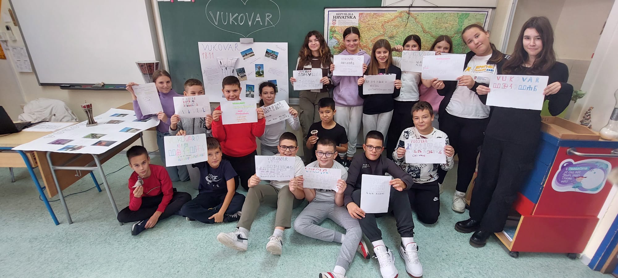 I u našoj školi Vukovar živi! Kao i svake godine, tako i ove, učenici i učitelji naše škole na različite načine odaju počast gradu heroju - Vukovaru. Prisjećajući se Vukovara i poštujući njegovu žrtve i heroje, poštujemo sve nedužne žrtve i branitelje Domovinskog rata diljem Hrvatske. On je simbol Domovinskog rata, hrvatske obrane, junaštva i žrtve za neovisnu Republiku Hrvatsku. Ujedno nam simbolizira i želju za mirom, da se ovakvo nešto nikada nigdje više ne dogodi. Stoga se s ponosom prisjećamo bitke za Vukovar koja je trajala gotovo 3 mjeseca. Okončana je 18.11.1991. slomom obrane grada i zato taj datum u Hrvatskoj obilježavamo kao državni praznik Dan sjećanja na žrtve Domovinskog rata i Dan sjećanja na žrtvu Vukovara i Škabrnje.