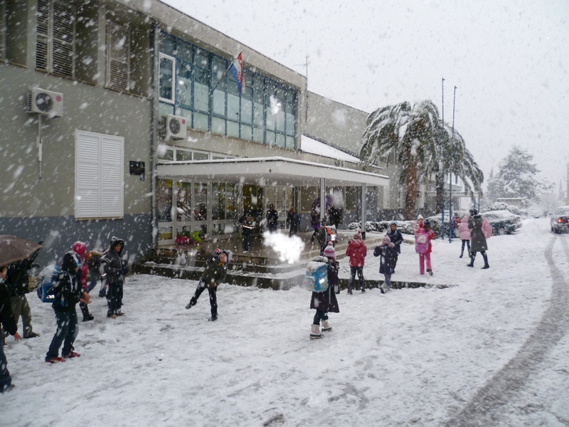 Usred snijega od pahulja koje lete bijelog bosog snješka napravio je naš Matej iz 1.a, učenik učiteljice Dubravke Pivac.