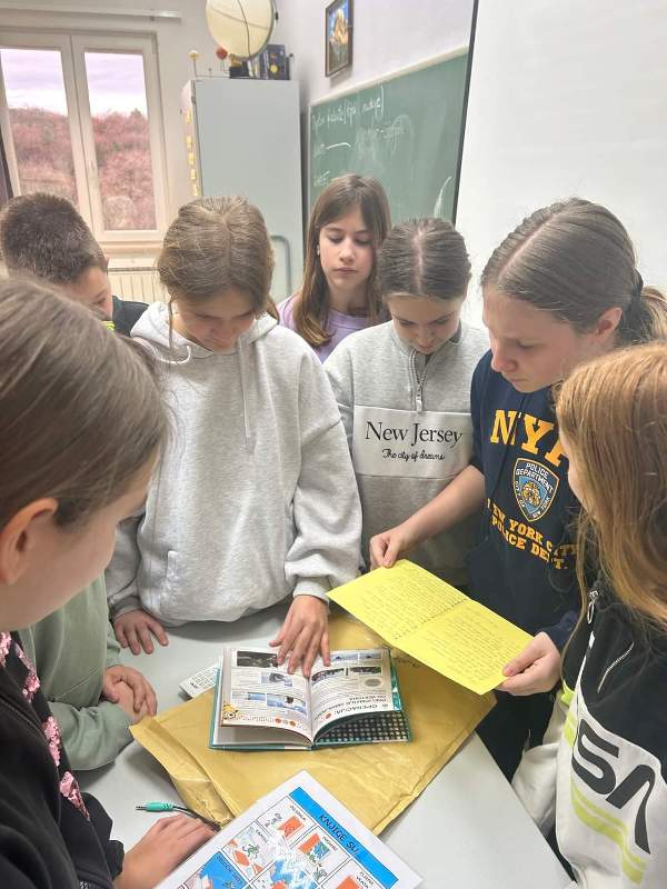 Uspavani ponedjeljak u 5. razredu PŠ Dobrinj. Negdje na polovici sata, netko kuca na vrata. Ulazi domar i donosi pismo. Kreće žamor i dodatno uzbuđenje. Naravno, i rasprava kome će pripasti čast otvoriti pismo! Zajedno odlučujemo da ćemo ići na svima poznatu opciju - slučajni odabir. Ponos djevojčice kojoj je pripala ta čast! Dio učenika se okuplja oko nje kako bi došli do pisma. Pismo je čitalo nekoliko učenika, od uzbuđenja su im glasovi podrhtavali. Hvala kolegici Marini Burđelez i petašima OŠ V. Nazor iz Ploča na divnoj knjizi i predivnom pismu uz posebne stihove za koje ste dobili pohvale od mojih petaša. Veselim se budućoj suradnji“!
