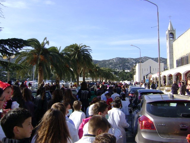Povorka je iz škole krenula prema Trgu kralja Tomislava, odakle su maškare uz pjesmu i ples koračali gradom do crkve Kraljice Neba i Zemlje, gdje je održan prigodni program s klaunom od preko dva metra, te su bili počašćeni krafnama i sokovima.