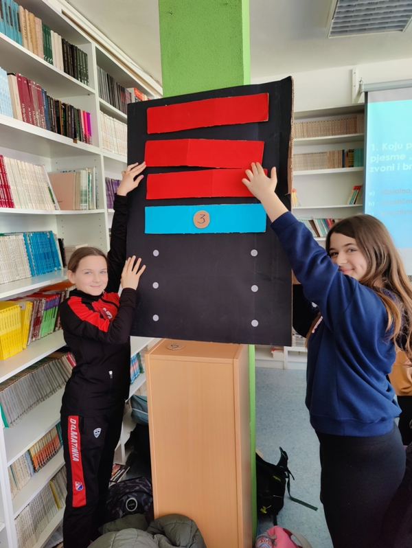 Kad se koristi upitnik s uskličnikom? Zašto nam se vrti kada se okrećemo oko sebe? Kakav je jezik pasa? Gdje je jezero Bled? Što je mimika, a što digresija? Od koje se godine dodjeljuje nagrada „Oscar“? Koliko je živio Dragutin Tadijanović i što je napisao? Odgovore na ova pitanja i ostale zanimljivosti učenici su saznali samostalno koristeći knjige koje bi nam uvijek trebale biti „pri ruci“.