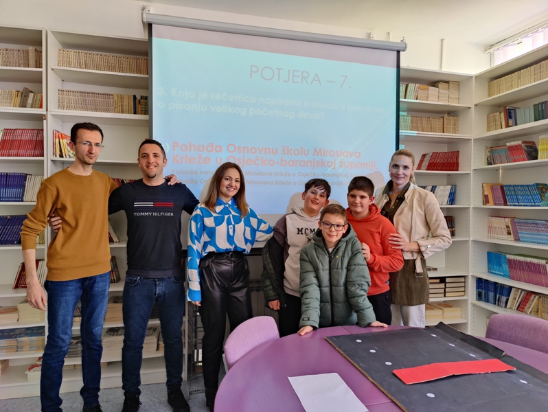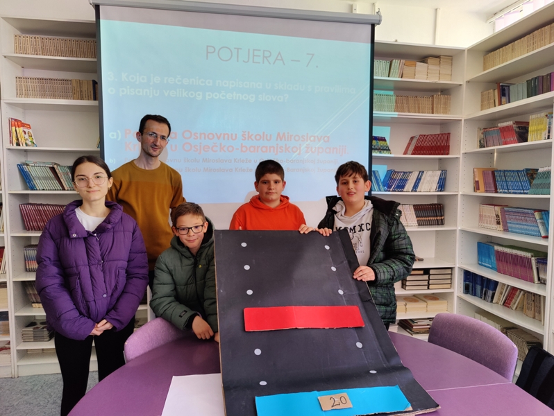 Mjesec hrvatskog jezika završen je omiljenim kvizom - "Jezičnom potjerom". Učenicima znalcima hrabro se suprotstavio ovogodišnji lovac - nastavnik Zdravko Medak. Bio je široke ruke pa su učenici, pobijedivši ga u završnoj potjeri, osvojili lijep iznos za čašćenje.