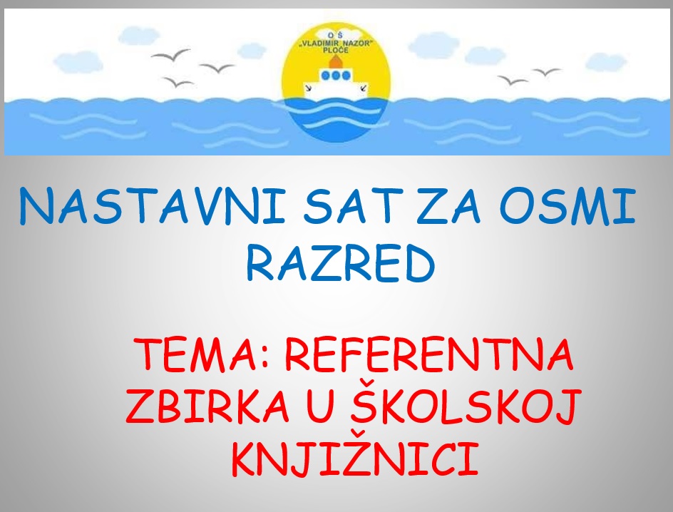 Učenici osmih razreda istraživali su referentnu ili priručnu zbirku u školskoj knjižnici. Uočili su razliku između enciklopedija i leksikona, jednojezičnih i višejezičnih rječnika, proučavali pravila iz gramatike i pravopisa, razgledavali atlase. Sve to može im pomoći kako brzo i lako pronaći potrebne informacije za zadaće i prezentacije.