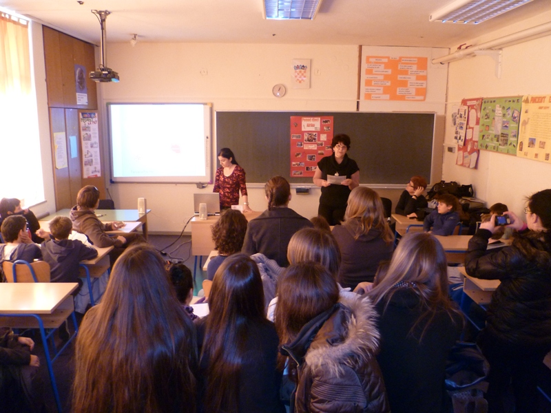 U petak, 24.02.2012. u 13 sati volonteri udruge „Kolajna ljubavi“ u našoj školi prezentirali su svoj projekt. Na prezentiranju projekta sudjelovali su predstavnici razrednih odjela naše škole i učitelji. U goste nam je došla volonterka iz udruge „Kolajna ljubavi“ da bi nam približila volonterski humanitarni rad udruge u Africi. Pozdravljamo Jelenu Aužinu, porijeklom iz Šibenika, profesoricu njemačkog i talijanskog jezika i književnosti, koja je upoznala poteškoće i bijedu Afrike.