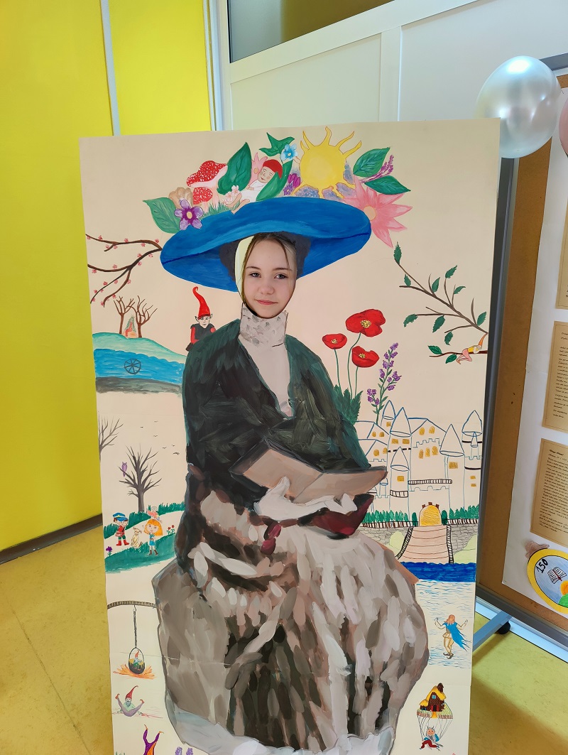 Učenice Likovne grupe s učiteljicom Marijom Čupić-Sentom izradile su "Kutak za fotografiranje" s likom Ivane Brlić-Mažuranić, koji je upotpunjen ilustracijama njenih najpoznatijih pripovijetki.