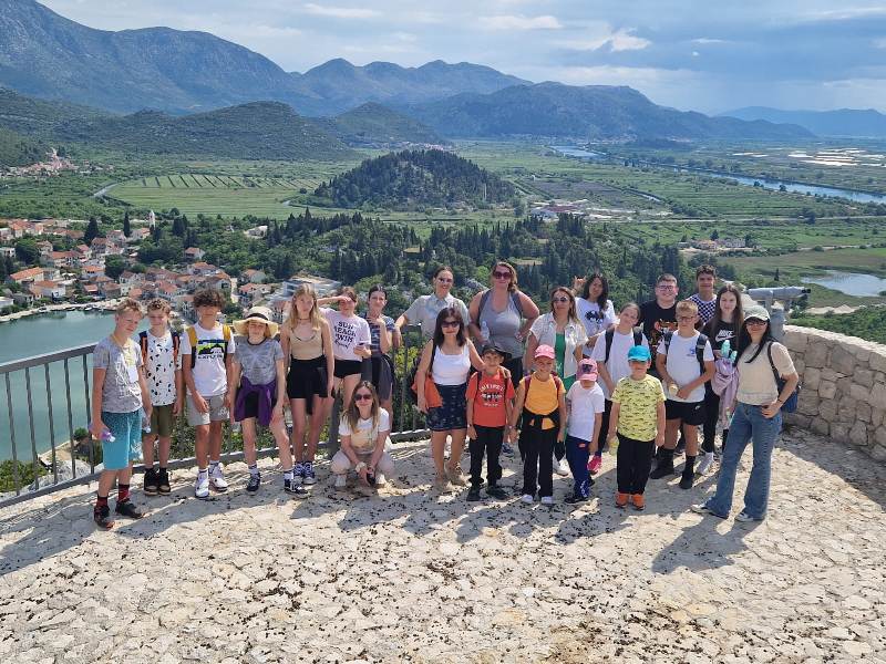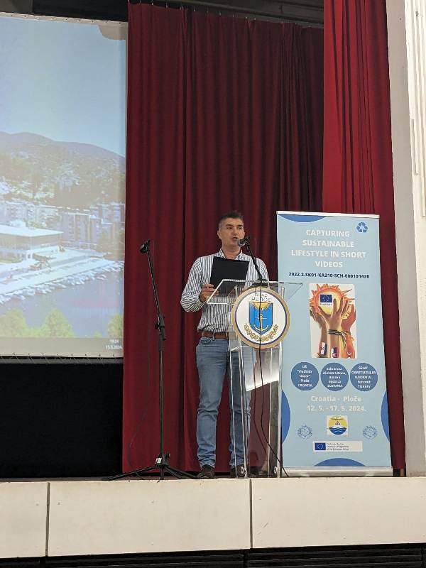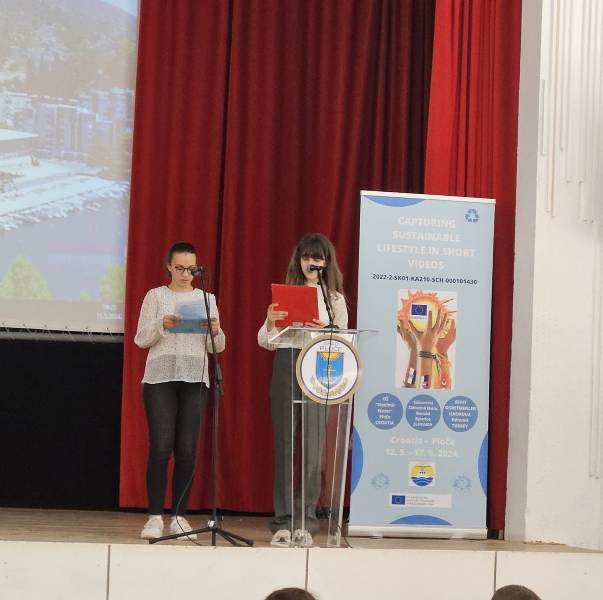Šetnjom su upoznali znamenitosti našega grada, u posjetu Reciklažnom dvorištu ponovili smo pravila razvrstavanja otpada, vozili smo se Baćinskim jezerima...Sljedeći smo dan izrađivali logo projekta u pijesku ušća Neretve, a zatim planinarili do vjetroorgulja na Trovru. Izrađivali smo glagoljičke suvenire na drvetu i platnu, učili o EM bio kuglicama i bacali ih u more kako bismo ga očistili prije nove sezone kupanja. Posjet Agro Etno Parku Žabac približio nam je život neretvanskog čovjeka, vezan uz rijeku i trupu. Popodne smo proveli u Zavičajnom muzeju Gradac gdje smo, proučavanjem eksponata, otkrivali održivost u životu dalmatinskog čovjeka u prošlosti. Navečer smo uživali u filmskoj večeri kada su svi partneri predstavili svoje kratke filmove za koje su dobili zaslužene nagrade. Zadnji dan domaćinstva začinjen je posjetom Dubrovniku gdje su gosti, uz neizostavan obilazak gradske jezgre, posjetili i dubrovački akvarij kako bi proučavali biljni i životinjski svijet Jadranskoga mora.