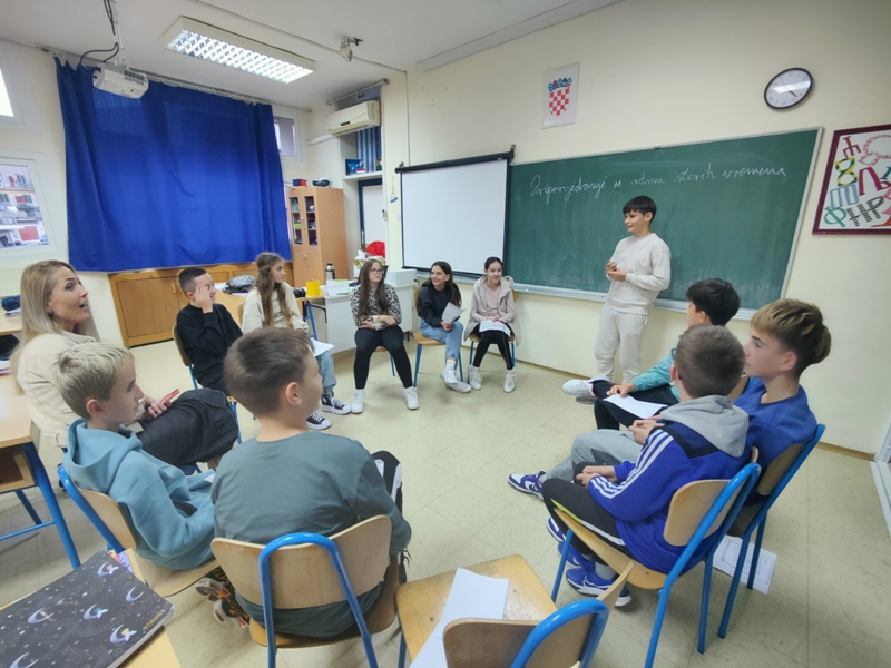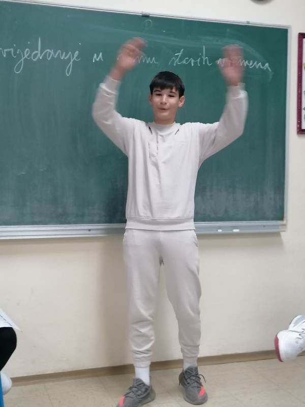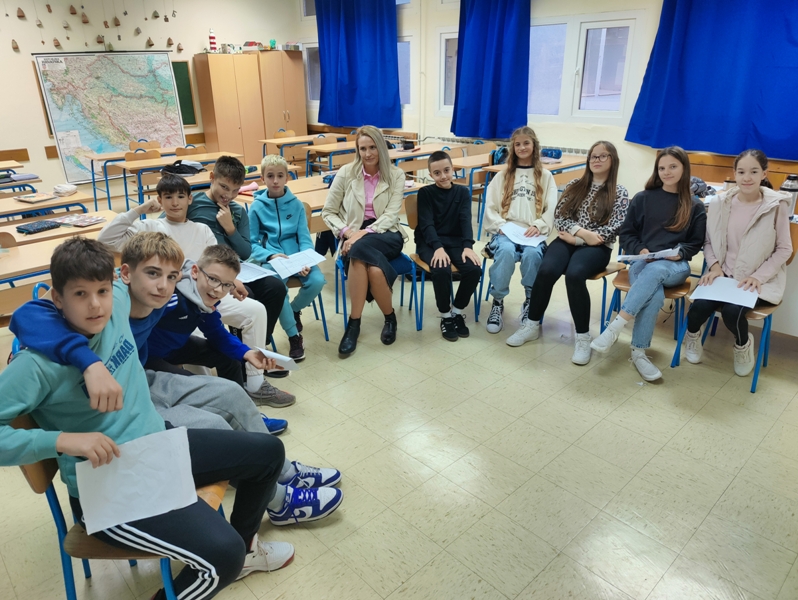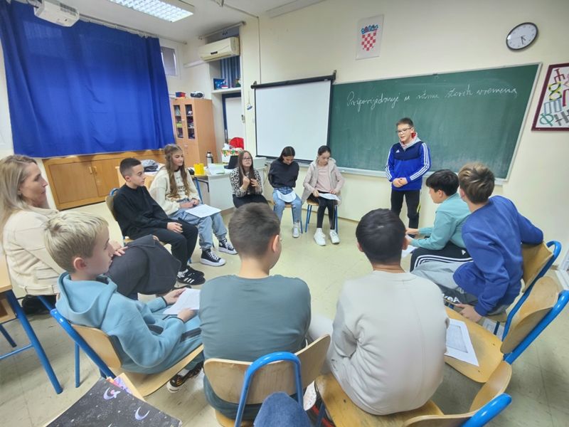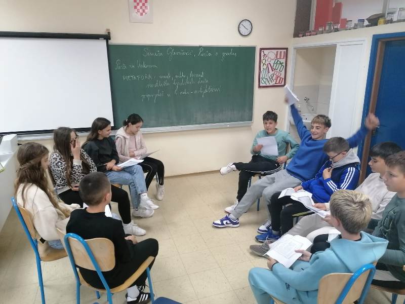 Učenici 6. a zabavili su se i opustili ulazeći u ulogu uvjerljivih pripovjedača/pripovjedačica iz starih vremena. Pripovijedali su priče nastale na prošlogodišnjoj radionici Riječi iz davnine i djeca današnjice. Zadatak je bio da u svoje pripovijedanje uključe i slušatelje. Najuspješniji pripovjedač ostvario je najveći broj bodova u zadanim kategorijam: govorne vrednote, govor tijela, uključenost publike, stvaralaštvo i kreativnost. Bravo za sve jer neke priče ostat će zapamćene!