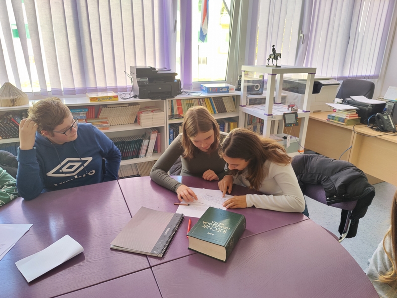 Zadatak im je bio da koristeći jedno od zadanih slova (P,R,S,T) naprave smislenu priču, gdje svaka riječ mora imati samo jedno od navedenih početnih slova. Učenike smo podijelili u grupe, dali im rječnik kao i unaprijed pripremljene popise najčešćih riječi za zadano slovo. Učenici su uspjeli napraviti zadano. Svoje priče su predstavili u školskoj knjižnici. Zadatak nije bio lagan ali možemo reći da su dojmovi učenika idejom i aktivnosti više nego pozitivni. Pročitajte pobjedničku priču :)