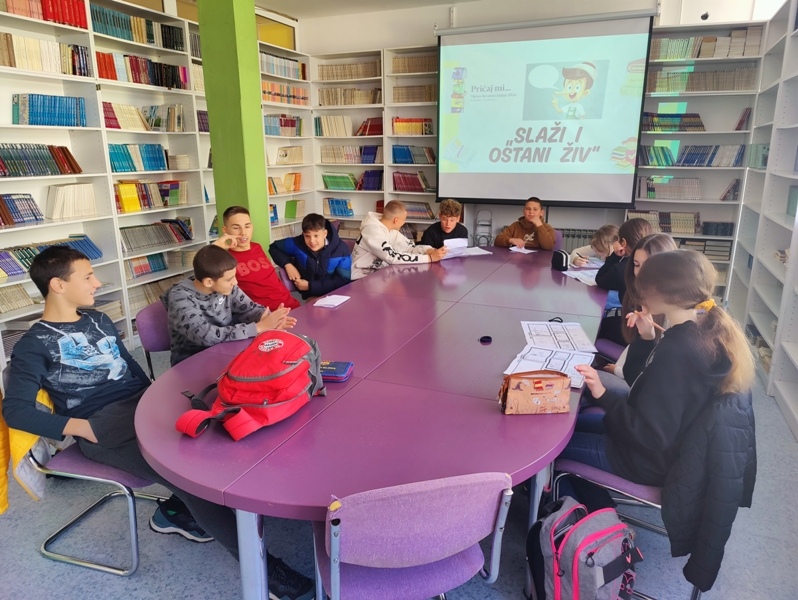 Školska knjižnica bilo je mjesto potrage za najboljim „lažovom“. Zadatak učenika bio je smisliti priču za koju se unaprijed zna da je laž i uvjeriti žiri koji se sastojao od pedagoga, učiteljice informatike i školskog knjižničara. Uz njih sudionici su međusobno komentirali i ocjenjivali ono što su drugi predstavili. Kriteriji koje smo koristili prilikom ocjenjivanja bili su: Dužina trajanja priče, ideja, smisao priče, govor tijela, reakcija sudionika i sigurnost prilikom pričanja i uvjeravanja u ono što nam „žele prodati“. Svi skupa smo se nasmijali, postavljali pitanja i komentirali naše „spretne muljatore“. Čestitamo svima koji su se potrudili i sudjelovali. Kakva bi to bila priča da nismo imali 2 pobjednika. Čestitke Deniju i Ivanu koji nisu rekli najviše, ali su bili najbliže „istini“. Temelje definitivno imaju!