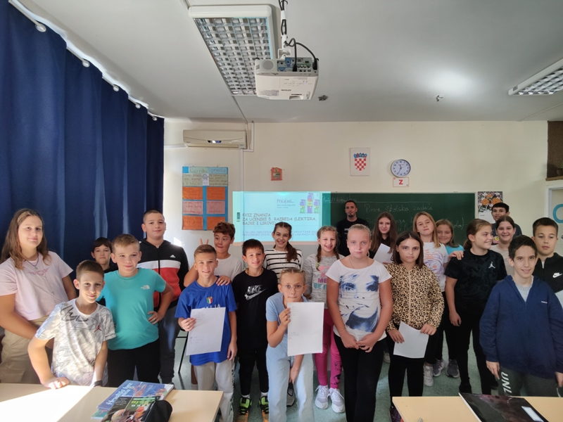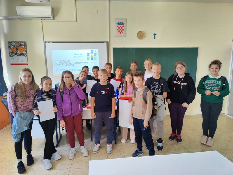 Mjesec smo započeli kvizom znanja na temu likova iz lektire, bajki i legendi za učenike 5. razreda. Oblik učenja kroz kviz kod djece izaziva želju za istraživanjem, timskim radom i pokazao se jako poticajan. Kviz se sastojao od 20 pitanja, 5 pitanja u kojima su učenici trebali prepoznati naslovnice lektira, 10 pitanja gdje su bili ponuđeni odgovori a, b, c i 5 pitanja otvorenog tipa gdje je bila potrebno dati konkretan odgovor na zadani upit. Ekipe su pokazale zavidno znanje iz čitanja lektira. Radujemo se novim kvizaškim izazovima. Posebna pohvala za ekipu koja je imala maksimalan učinak 20/20 bodova!