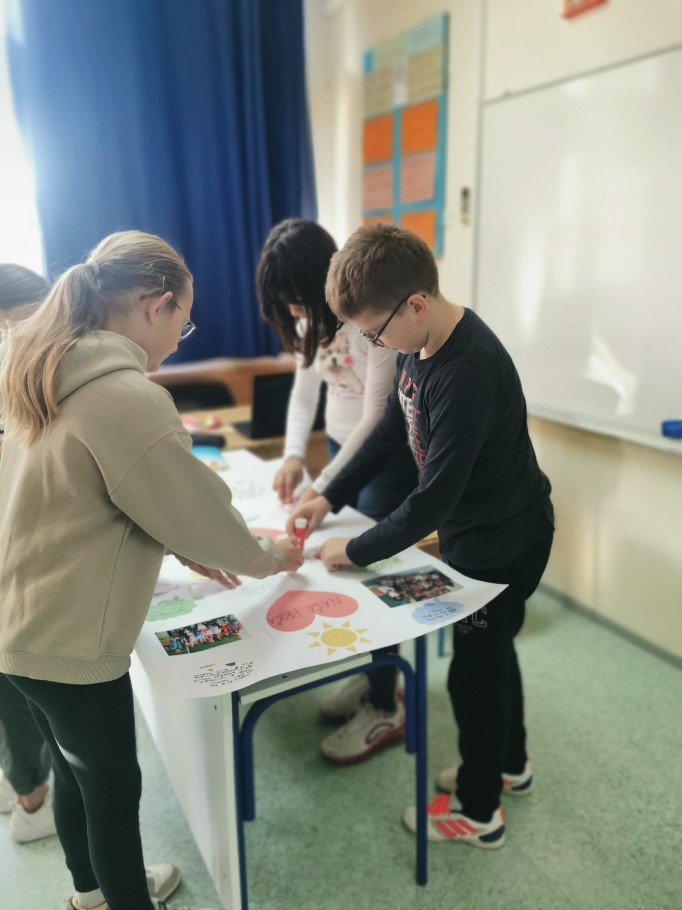 Kako izgleda „Naslovnica iz mašte“ pokazali su nam učenici 4. a razreda. Na prijedlog školskog knjižničara uz pomoć učiteljice, učenici su nam ispričali svoju priču. S obzirom da je tema MHK 2024. bila pričanje priča, ovo je bila prilika da se na jedno mjesto stave sve uspomene, citati, crteži, fotografije i anegdote kroz 4 godine školovanja u obliku plakata – naslovnice koja prikazuje zajedništvo inspirirano i ispričano od kreativnih učenika. Naslovnica iz mašte zapravo je priča jedne generacije koja se nalazi u njihovu kabinetu i koju će izložiti zadnji dan nastave. Bravo!