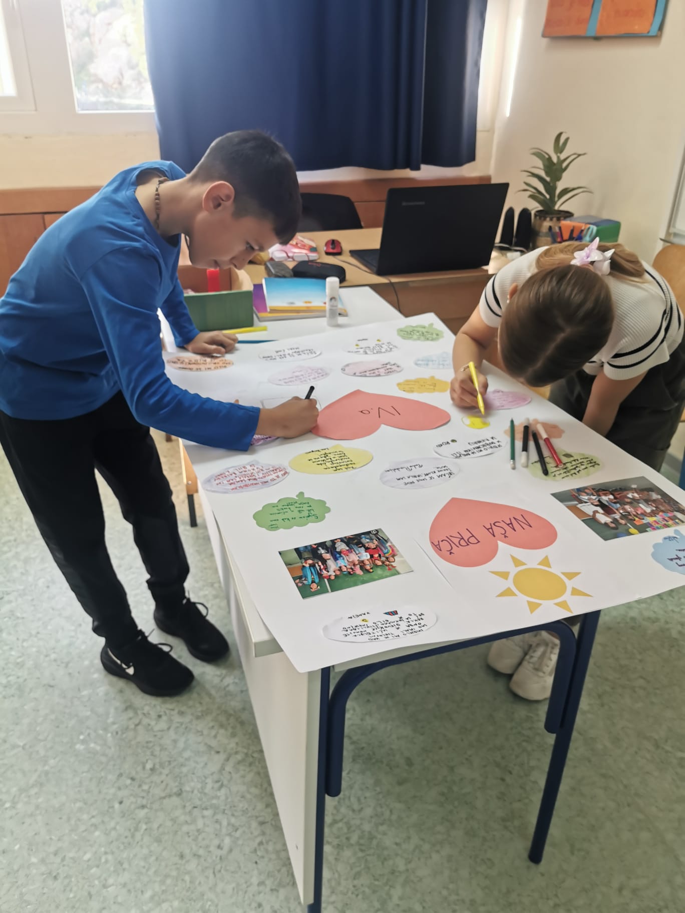 Budući da je tema ovogodišnjeg Mjeseca hrvatske knjige pripovijedanje, posebice onih književnih vrsta koje pripadaju usmenoj književnosti, učenici petih razreda upotrijebili su dobro poznate poslovice za stvaranje novih pripovjednih djela. Nastale su tako basne u kojima su lisica, žaba, mrav i ostale životinje na šaljiv način pokazale da se dobro uvijek dobrim vraća, a tko se hvali, sam se kvari. Osim toga, učenici su oblikovali priče koristeći što više zadanih poslovica o školi, prijateljstvu ili obitelji. Odabrana je najbolja priča –Najkraći put nije uvijek najbolii, a naziv jedne priče Tko veselo uči, lako nauči najbolje prikazuje kako su učenici proveli ove nastavne sate.