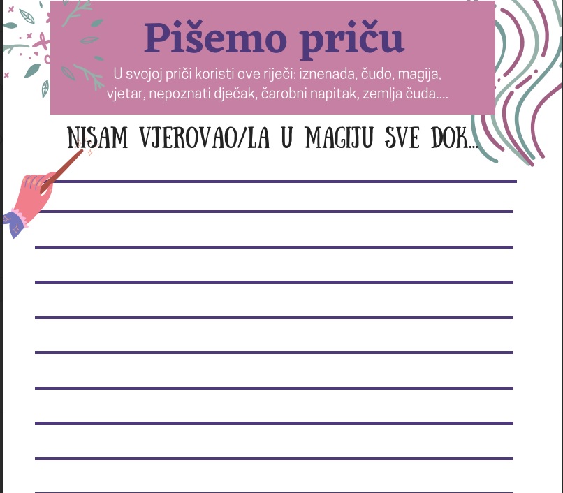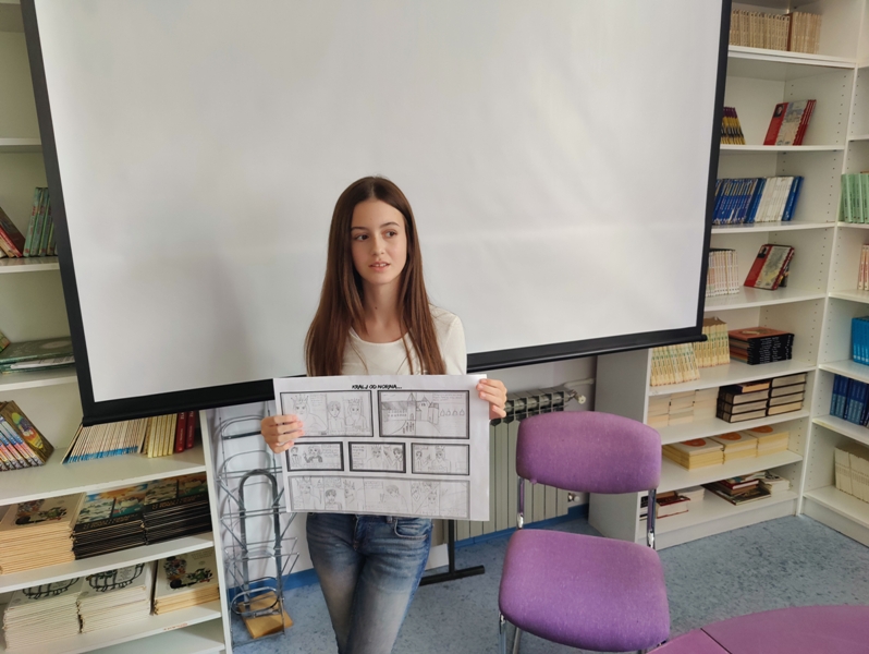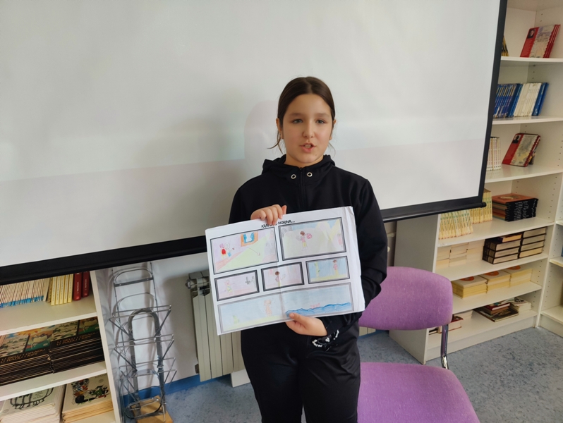 A što tek reći na aktivnost koju smo proveli s učenicima 4. c razreda u školskoj knjižnici gdje su učenici uz podršku učiteljice i knjižničara imali zadatak da koristeći zadani predložak, svoju maštu i kreativnost napišu smislenu priču koja će biti zabavna i originalna. Trud i rezultat nisu izostali. Predstavljanje priča pokazalo je da su djeca dobro shvatila zadatak i možemo reći da je svaka priča imala ono nešto što je izdvaja od drugih...