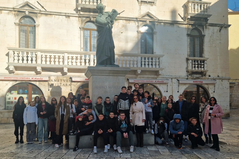 Kada prosinac pokuca na vrata, intenzivno počnemo razmišljati o blagdanskim radostima, ali i obiteljskom zajedništvu i toplini doma. Upravo o toj temi progovara i kazališna predstava "Zagrljaj kojeg pamtim" koju su učenici sedmih razreda gledali u Gradskom kazalištu mladih, u sklopu izvanučioničke nastave - posjet kazalištu i Gradskoj knjižnici Marka Marulića. Terenska nastava realizirana je u ponedjeljak, 16. prosinca 2024. Sedmaši su posjetili splitska kulturna središta u pratnji razrednica i predmetnih učiteljica Hrvatskoga jezika.
