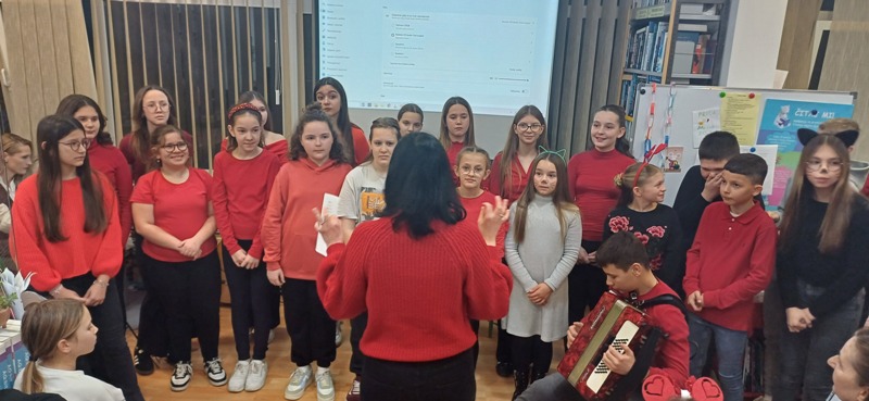 Glazbom je večer obogatio Školski pjevački zbor pod vodstvom učiteljice Helene.