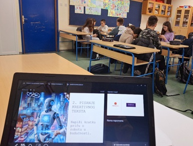 Na radionici „S pametnim pomoćnicima u digitalnoj zamci“ učenici su razvijali kritičko vrednovanje umjetne inteligencije razmišljajući o njezinoj pouzdanosti, transparentnosti, privatnosti podataka, etičnosti, sigurnosti te društvenim i ekonomskim utjecajima.