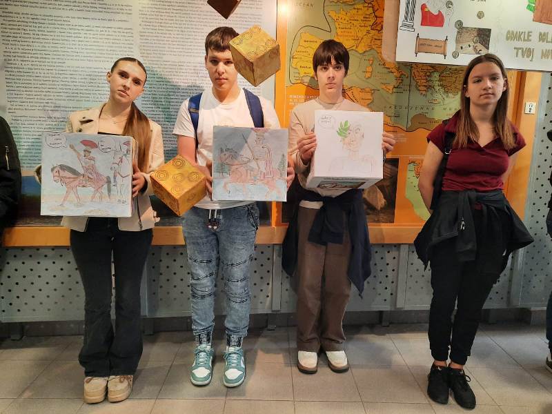 Na izvannastavnim aktivnostima Mladi povjesničari i Likovne kulture, uz mentorice Adrianu Kostanić Burić i Mariju Čupić-Sentu, učenici naše škole istraživali su, likovno obradili i prezentirali poznatu misao Gaja Julija Cezara „Kocka je bačena“.