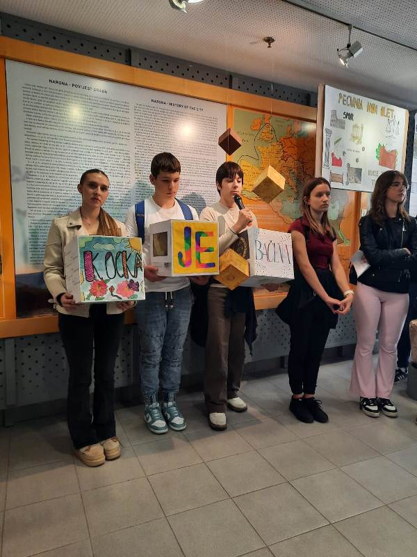 Naša škola je i ove godine sudjelovala u edukativnoj muzejskoj akciji (EMA) Arheološkog muzeja Narona u Vidu povodom Međunarodnog dana muzeja. Ovogodišnja tema je bila JEZIK pa su učenici osnovnih i srednjih škola iz Ploča, Metkovića, Opuzena i Mljeta obrađivali izreke poznatih Rimljana. Kroz latinske izreke istraživali su povijesni kontekst njihova nastanka te kako se iste mogu primijeniti na događaje u suvremenom vremenu.