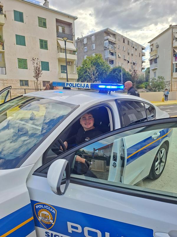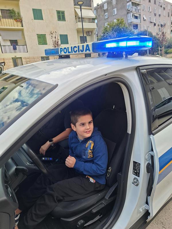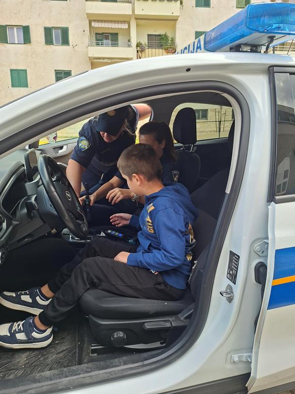 Na kraju su prvašići imali priliku sjesti u policijski automobil i vidjeti kako se pale rotacije, sirena i sl.