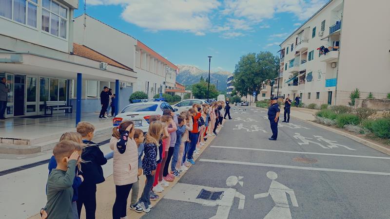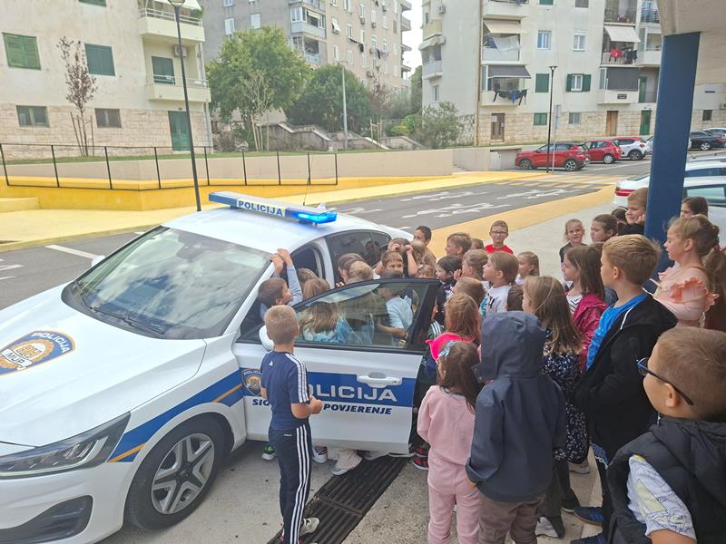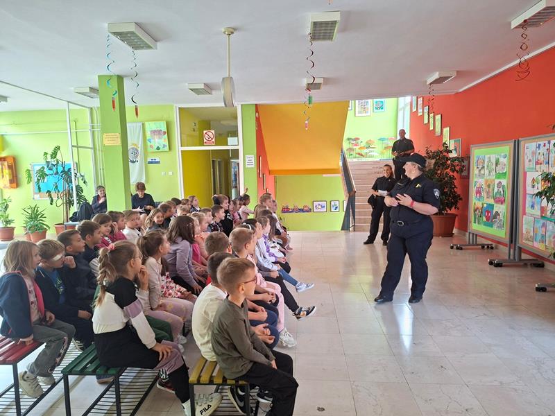 Policijski službenici su kroz zanimljiv razgovor pokazali i učili naše prvašiće kako pravilno prelaziti cestu, što znače osnovni prometni znakovi, zašto je važno nositi sigurnosni pojas te kako se ponašati u blizini prometnica. Posebno su naglasili sigurnost djece-pješaka i važnost vidljivosti u prometu.