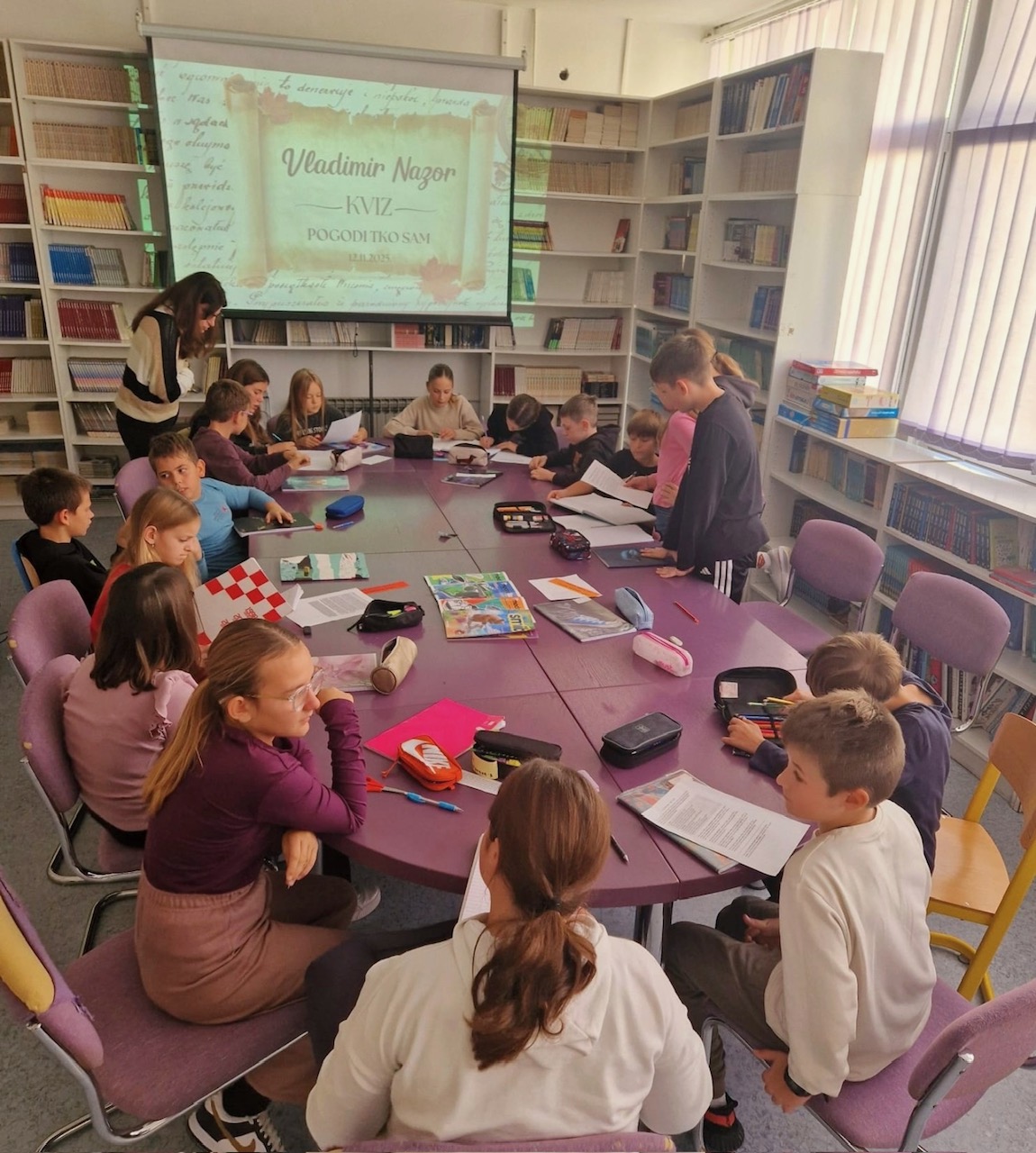 U Mjesecu hrvatske knjige tradicionalno se češće družimo u domu knjiga - u našim knjižnicama. Tako je ovu srijedu, u školskoj knjižnici, održana radionica "Monolozi Nazorovih likova". Radionica je aktivnost školskog projekta "U tvome krilu rastem ja" kojim obilježavamo 150. obljetnicu rođenja književnika Vladimira Nazora.