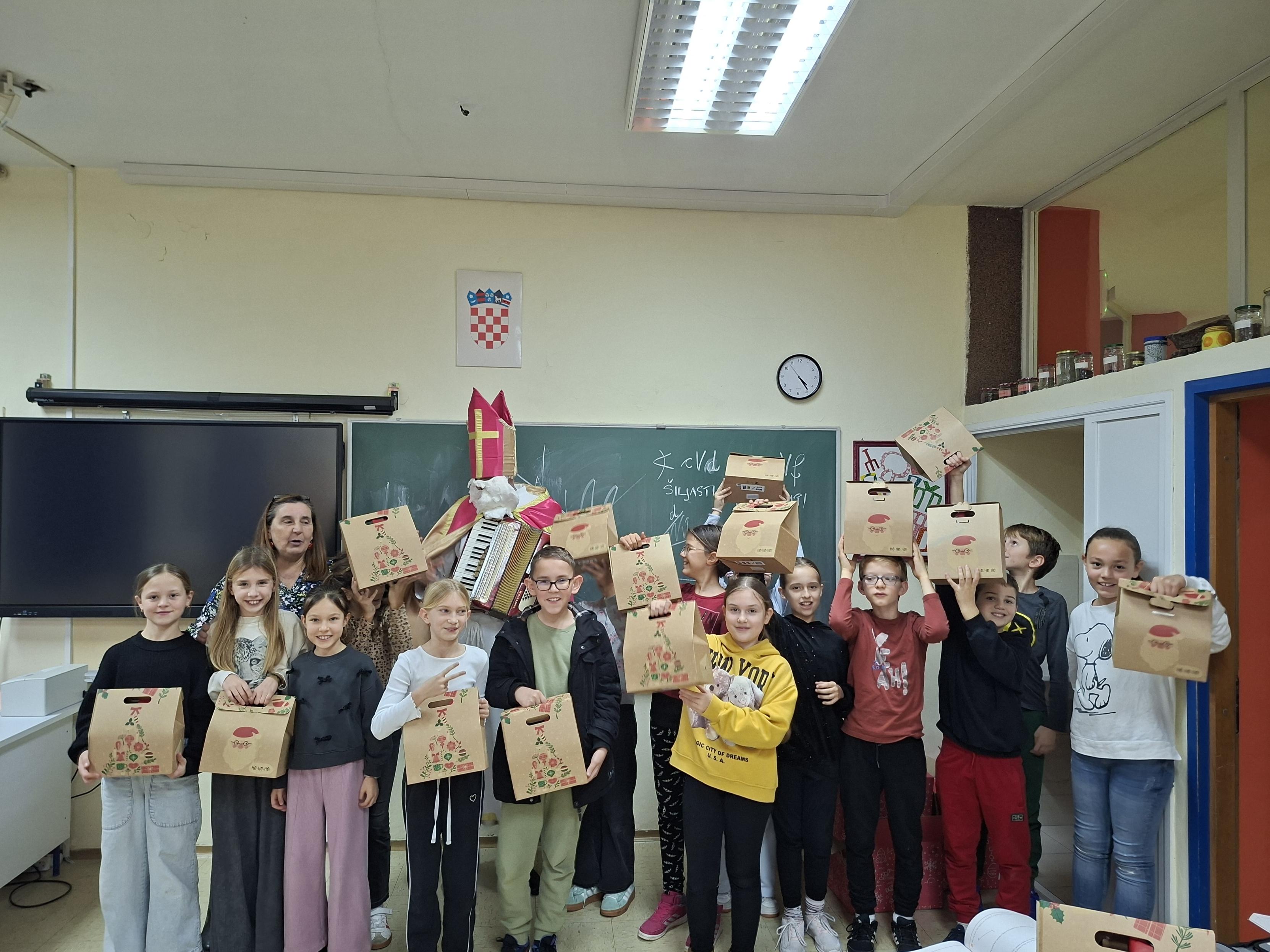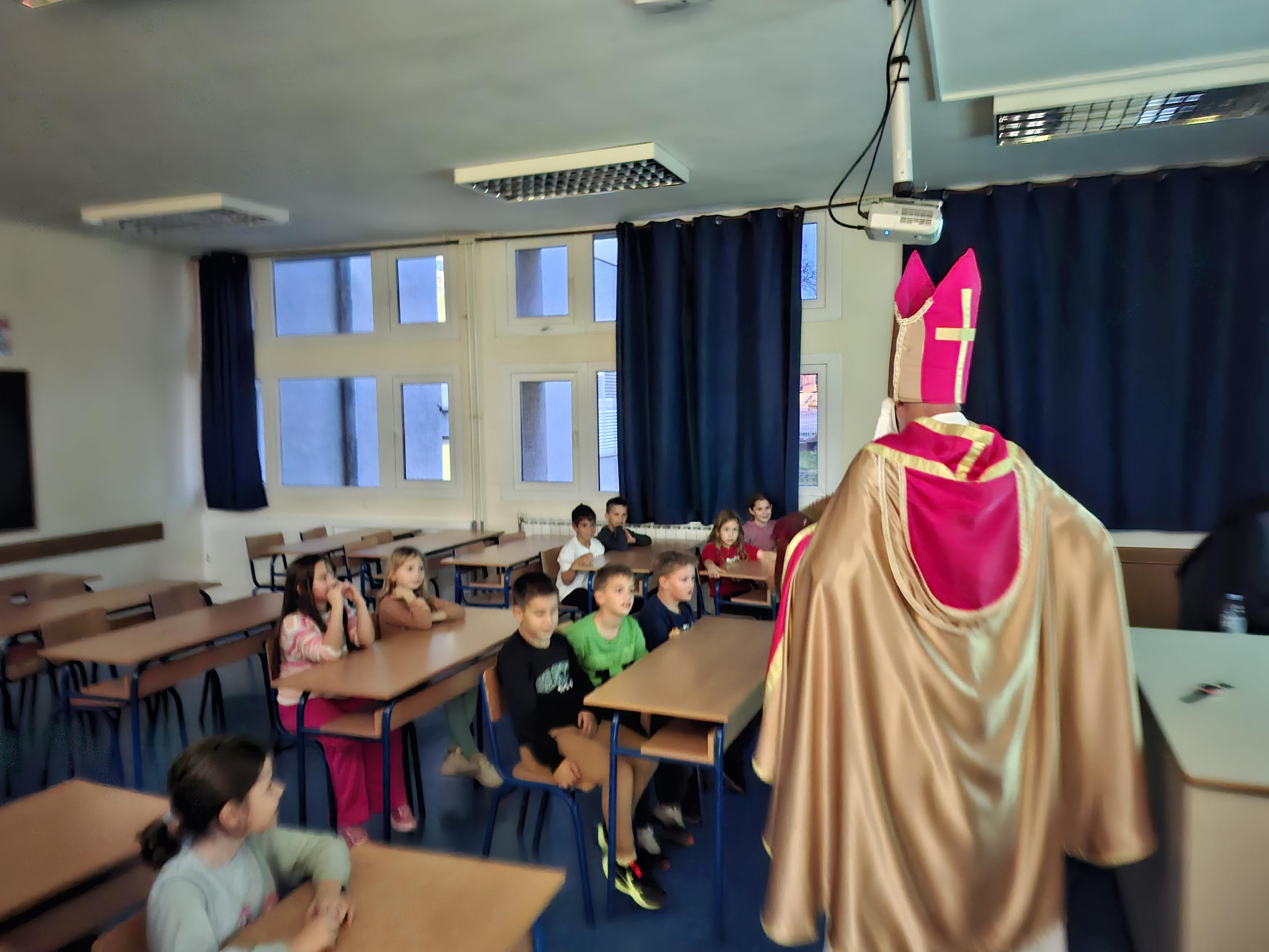 Sv. Nikola je malo ranije posjetio naše učenike jer je čuo da su jako, jako dobri, pa nije mogao više čekati da im podijeli poklone! Naš dragi sv. Nikola je zapjevao s nama i donio nam sreću i veselje!