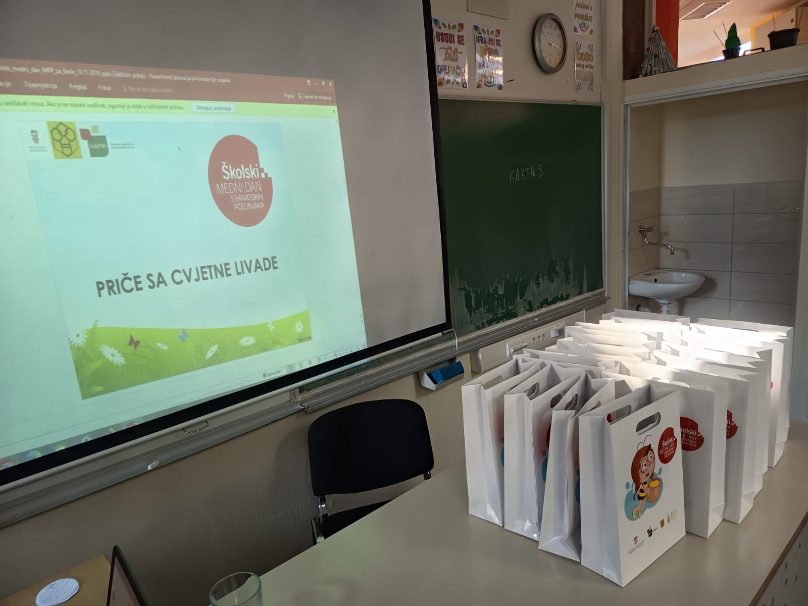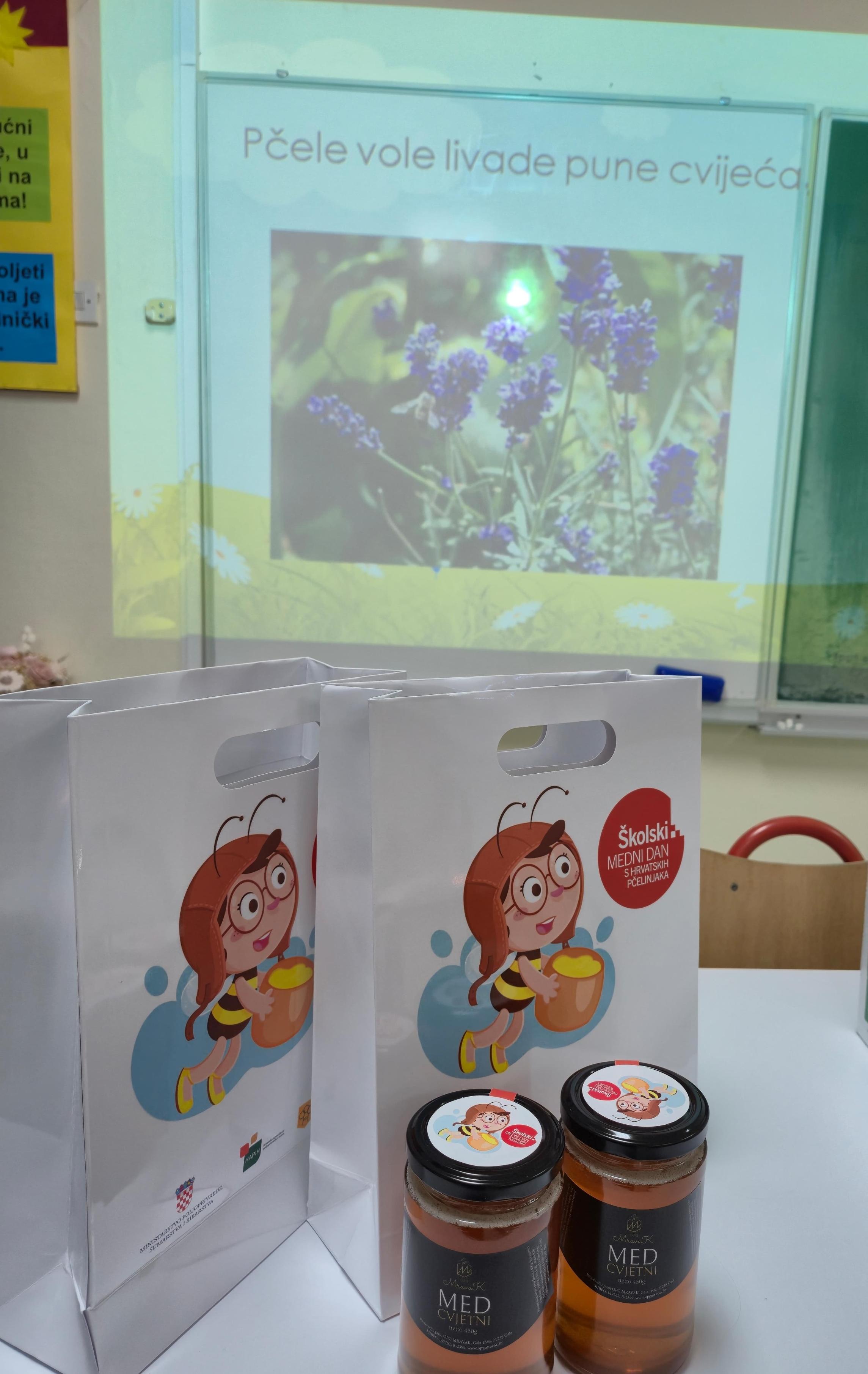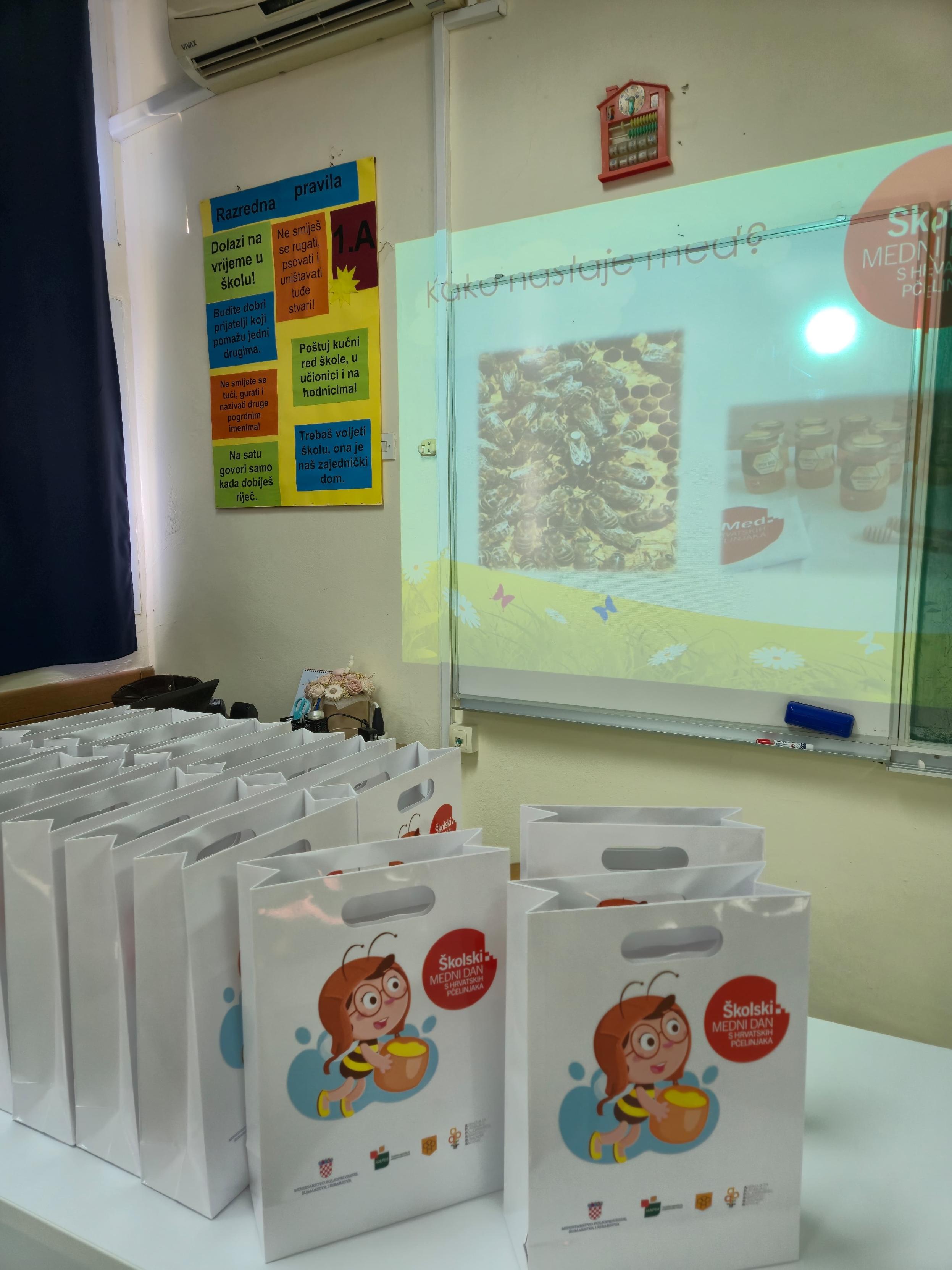 Učenicima prvih razreda osnovnih škola su podijeljeni različiti priručni i edukativni materijali opće vidljivosti sa znakom Školski medni dan s hrvatskih pčelinjaka uključujući i slikovnicu edukativnog karaktera o pčelarstvu prilagođenu njihovoj dobi.