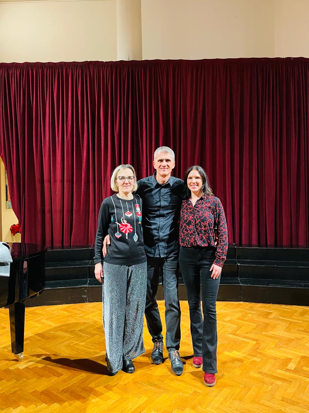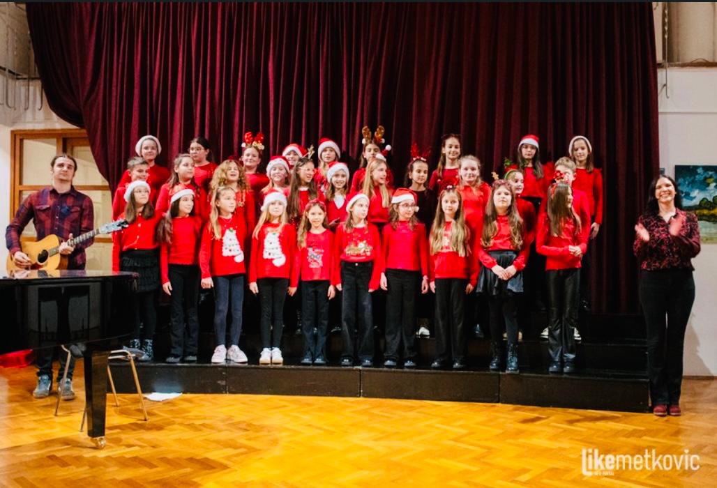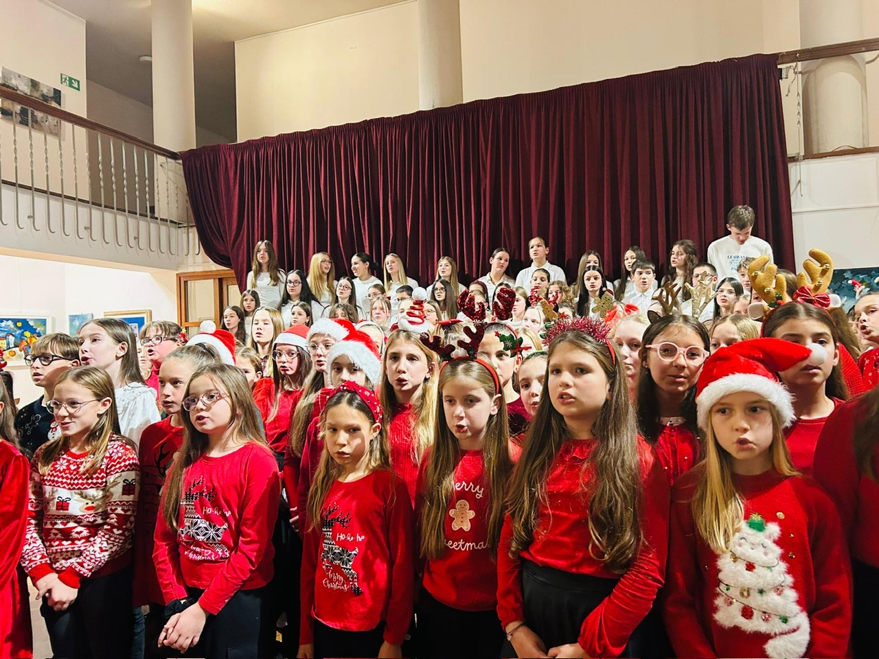 Veliki školski pjevački zbor otpjevao je dvije zahtjevne pjesme dvoglasno i troglasno, Snowman i Sleigh ride. U drugoj pjesmi kazoo su svirale Klara Jakić i Antonia Šendo, a na praporcima je vješto držala ritam Paula Šunjić. Na sve tri pjesme gitarsku pratnju svirao je Silvestar Ćavar.