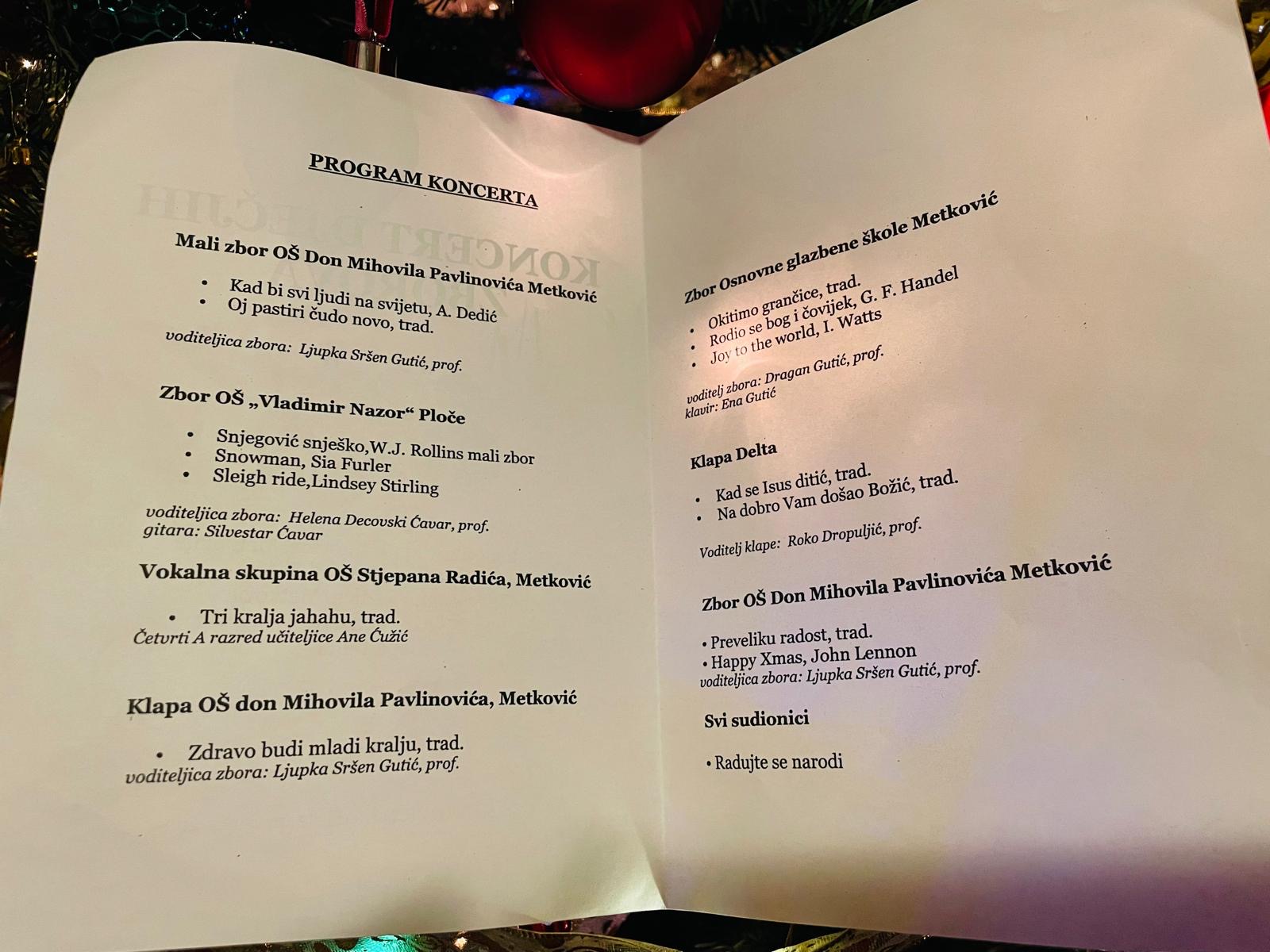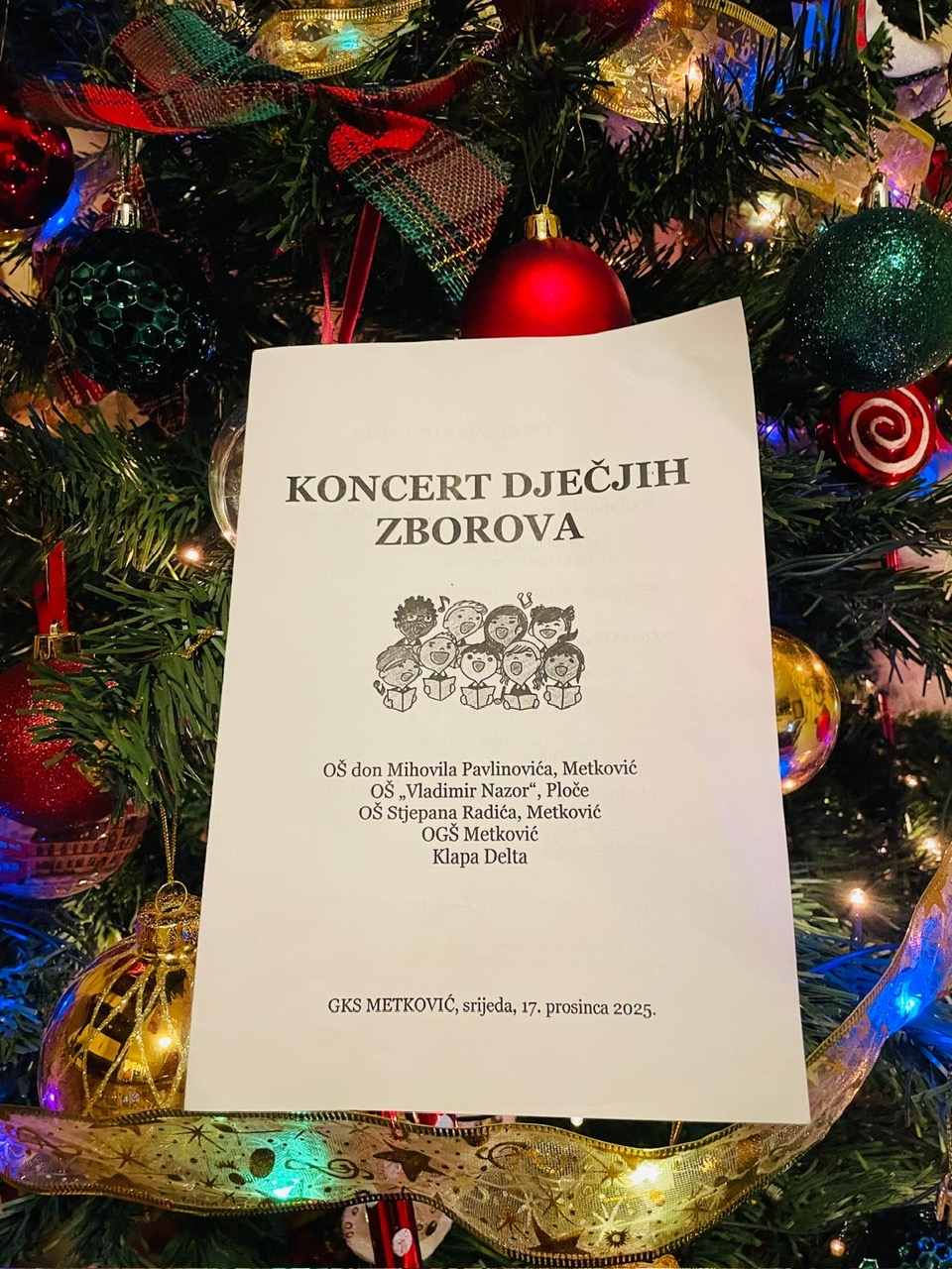 U srijedu, 17. prosinca 2025. godine u Gradskom kulturnom središtu u Metkoviću održan je tradicionalni božićni koncert dječjih zborova na kojem su nastupili učenici naše škole, kao i učenici OŠ don Mihovila Pavlinovića Metković, OŠ Stjepana Radića Metković, Osnovne glazbene škole Metković te klapa Delta.
