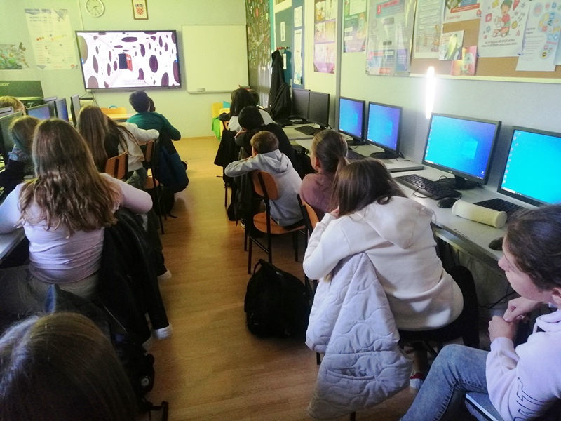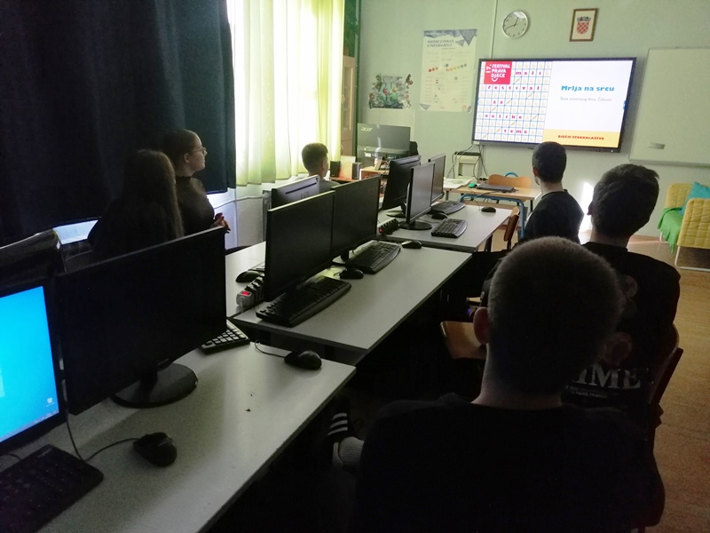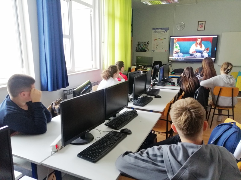 Od filmova smo gledali reportažu Detox srijeda i Pretežno vedro, filmove slobodnog stila Igra izvan ekrana, Oblak čvoraka i Mali veliki ljudi, igrani film Krugovi ljubavi, animirani film Mrlja na srcu i Phobia te dokumentarni film Tira. Učenici su pričali o doživljenom i svojim iskustvima te ispunili anketu, a aktivnosti su provele učiteljica informatike Dona Prović i školska psihologinja Nataša Palac.