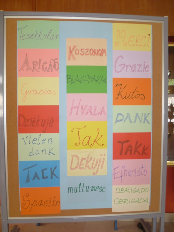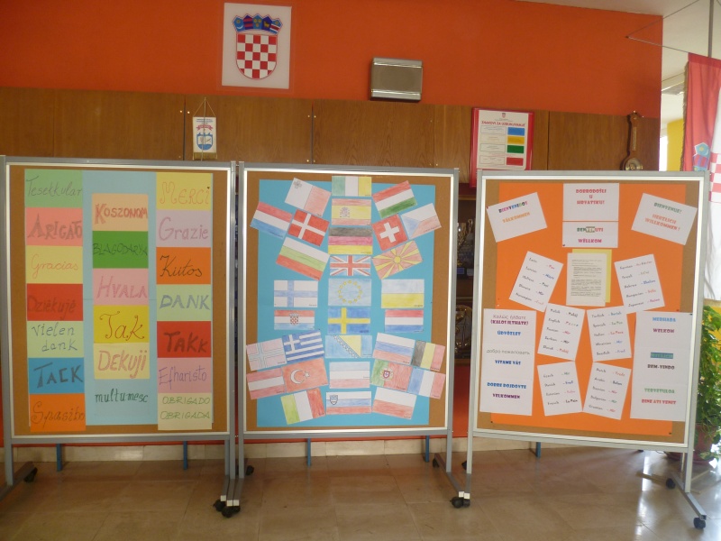Pretraživali smo na Internetu, tražili riječi Mir, Hvala i Dobrodošli, i nazive školskih predmeta na svim jezicima, pravili postere.