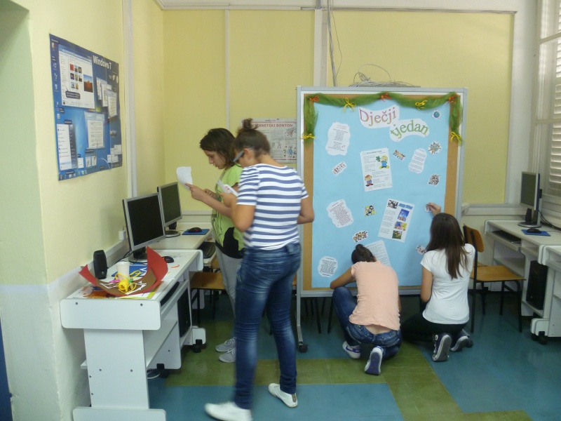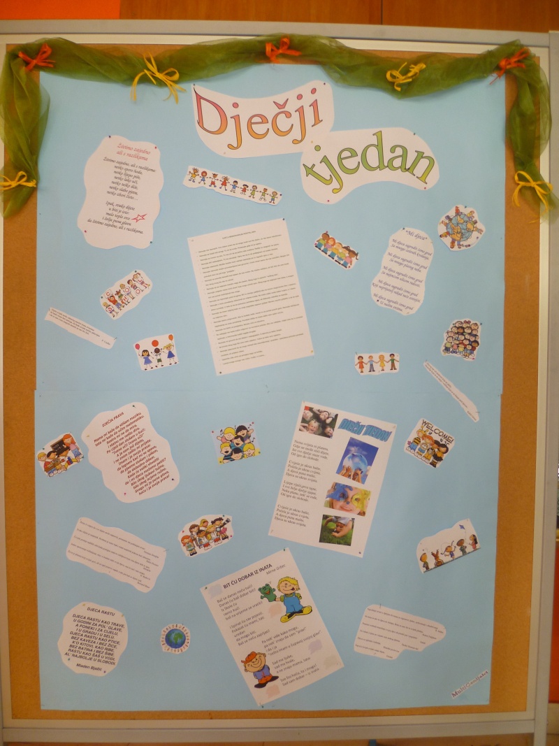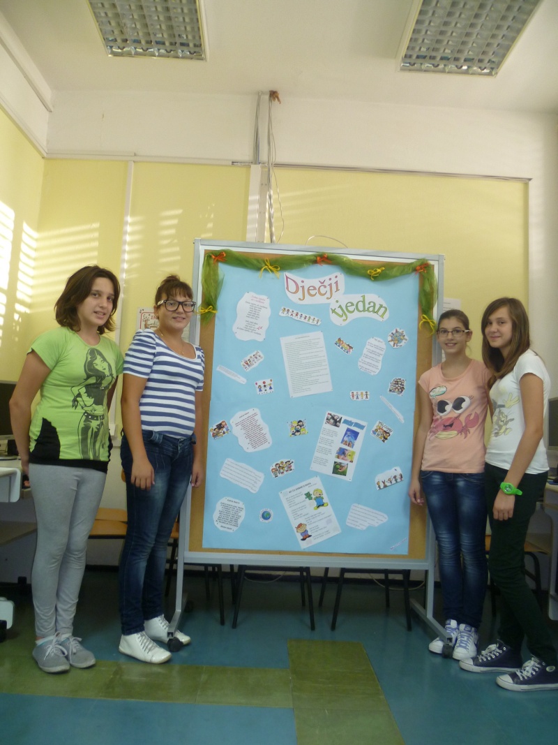 Multimedijalna grupa „MultiGenijalci“ koju vodi Dona Prović, nast. informatike, je obilježila Dječji tjedan prigodnim plakatom. Učenice iz 7. a razreda koje idu na multimedijalnu grupu (Atanasov Michelle, Grgurinović Ivana, Knežić Doris, Krilić Josipa, Pranjić Katja i Šendo Angela) su na vrlo kreativan način izradile plakat na koji su uvrstili dječji memorandum, prigodne citate i pjesmice, slike...