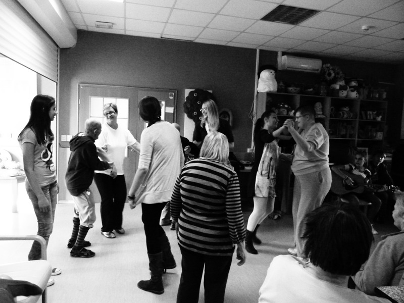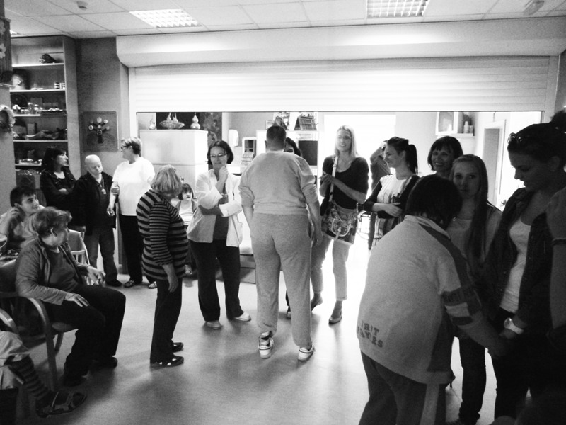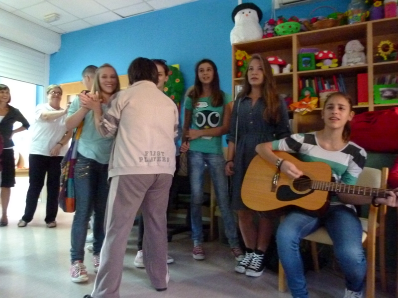 Polako se mijenjala unaprijed stvorena slika o ljudima s posebnim potrebama. Pjesma, ples, razgovor, šala stvorile su prijateljsku atmosferu. Uočila sam Zorana kojemu se život uvelike promijenio nakon prometne nesreće. Istakao se kao strastveni pjevač. Odbrojavao je taktove i znao sve riječi pjesama koje smo pripremili. Ubrzo smo počele improvizirati, a lista se počela puniti pjesmama po želji publike. Ritam je neke potakao na spontano đuskanje, a ostali su se pridružili.