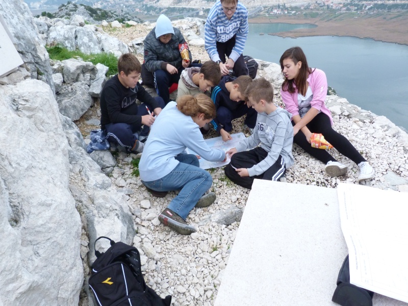 Naši domaćini i vodiči: Marina Markota Magdalena Šunjić i Josip Šunjić su nas upoznali sa prostorom koji smo vidjeli sa vrha: sela Čeveljuša, Mostina, Rogotin, Šarića Struga te jezera Vlaška, Jezerine i Parila. Ovaj put uz orijentaciju u prostoru više smo posvetili pažnje snalaženju na karti.