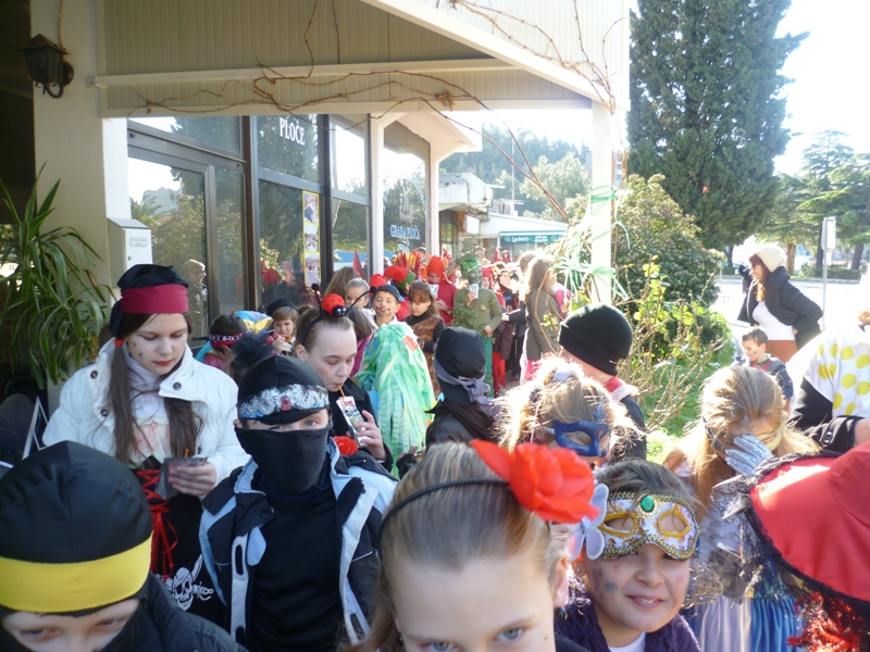 Tako se i u našoj Školi u petak, 8. veljače 2013. godine s početkom u 9.30 sati, organizirala dječja maškarana povorka za učenike od 1. do 4. razreda. Svatko je osmislio svoj kostim… Djevojčice su najradije bile princeze, vile, vještice, a dječaci gusari, kauboji i razni akcijski junaci.