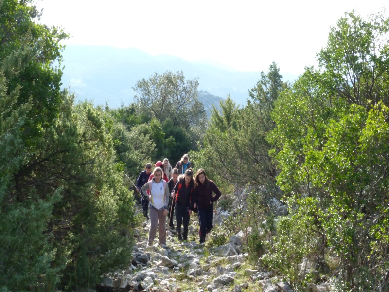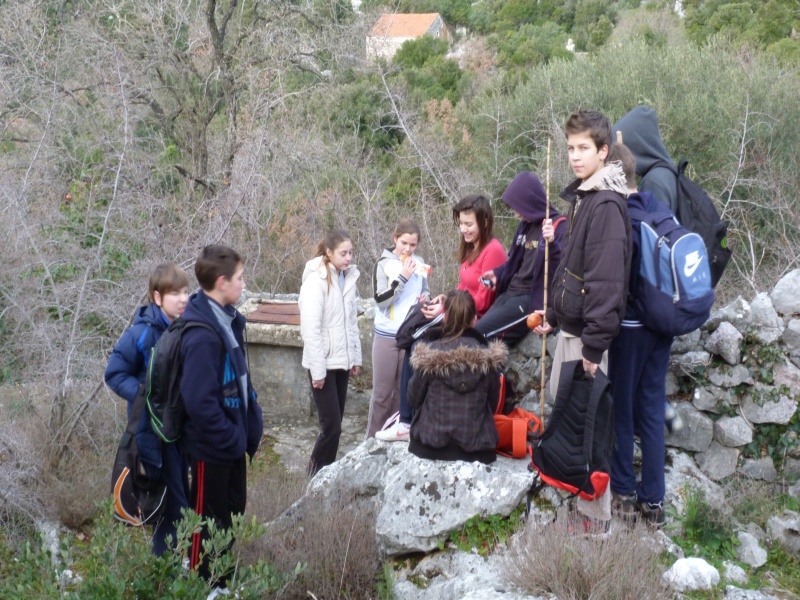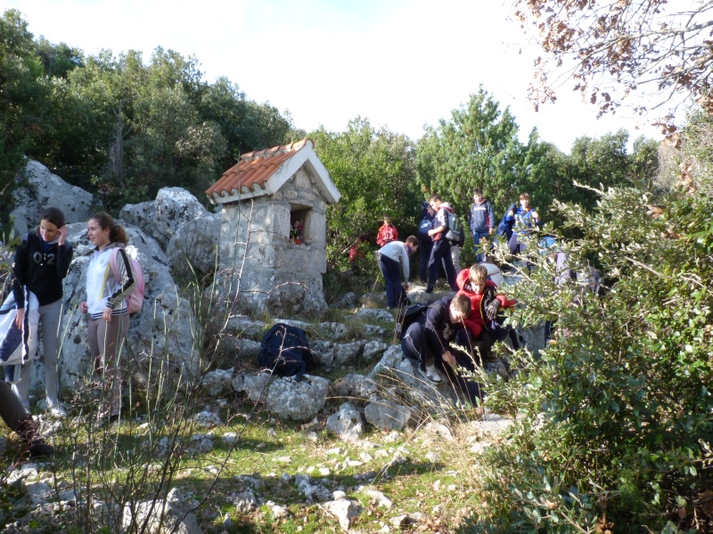 Ostatkom puta slijedili smo planinarske znakove tj. crveno-bijele krugove koji su bili naslikani na suhozidima. Nekoliko puta smo se zaustavljali kako bi predahnuli od puta. Na jednom malom odmoru naišli smo na malu kapelicu, a nastavnik Vlado nas nije iznevjerio i spremno nam je ispričao priču o njenom nastanku. Ostatak puta je bio suviše naporan i pomalo bolan. Bilo je previše drača i bodljikavih grmova.