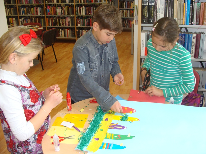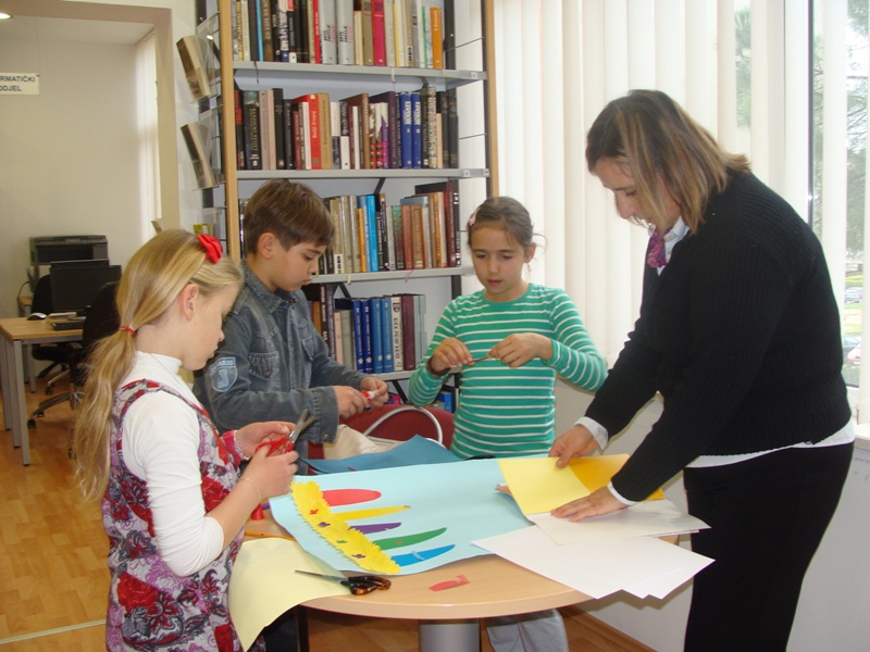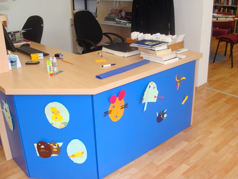 Kako knjižnica nastoji obilježiti važne datume u našem narodu, iskoristila je radost dječjih srdaca i kreativnost njihovih ručica da ožive koke, piliće i zečiće na veselim crtežima koji su osvježili prostor knjižnice za nadolazeće uskršnje blagdane.