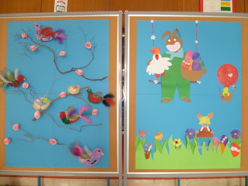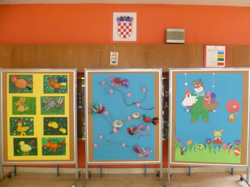 Prigodne motive i panoe bogate pisanicama, pilićima, ptičicama, rascvjetanim grančicama i uskršnjim zečićima izradila su djeca uz pomoć nastavnice likovne kulture Marije Čupić-Senta, te učiteljica Mirjane Barbir, Višnje Grančić i Berislave Grgurić, i na taj način izražavala Uskrs u njihovim iskrenim dječjim srcima.