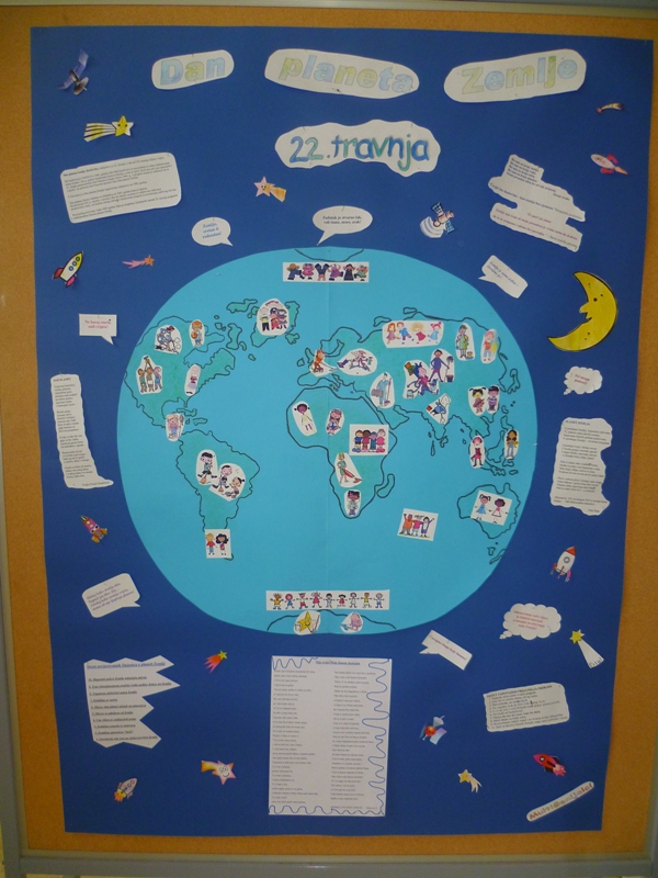 I naši su učenici na svoj način čestitali rođendan Zemlji, nastojeći ukazati na probleme i opasnosti koje prijete našem planetu, izrađujući prigodne panoe na satu likovne kulture i izvannastavne aktivnosti multimedija.