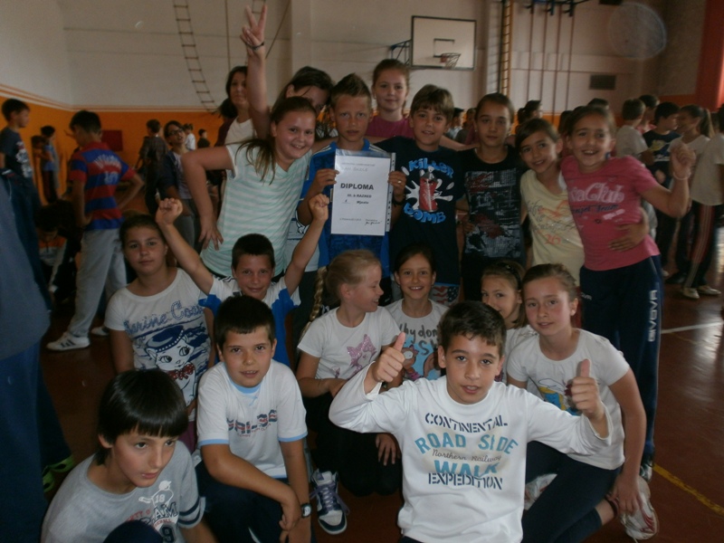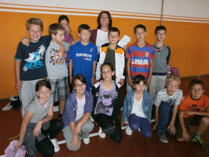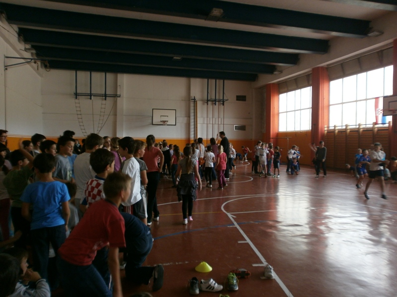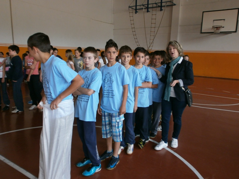 Sportska dvorana od jutra se orila od natjecatelja nižih razreda. Prvaši su se natjecali u kuglanju. Pobjednici su „Akavci“ učiteljice Vere! Drugaši su vodili loptu oko čunjeva - najbrži su bili „bekavci“ učiteljice Gordane. Trećaši su imali uzbudljivu utrku s izuvanjem i obuvanjem tenisica, u kojoj se proslavio 3b, učiteljice Duške. Četvrtaši su trčali u vrećama! Pobjednici? Četvrti b, učiteljice Mirjane!
