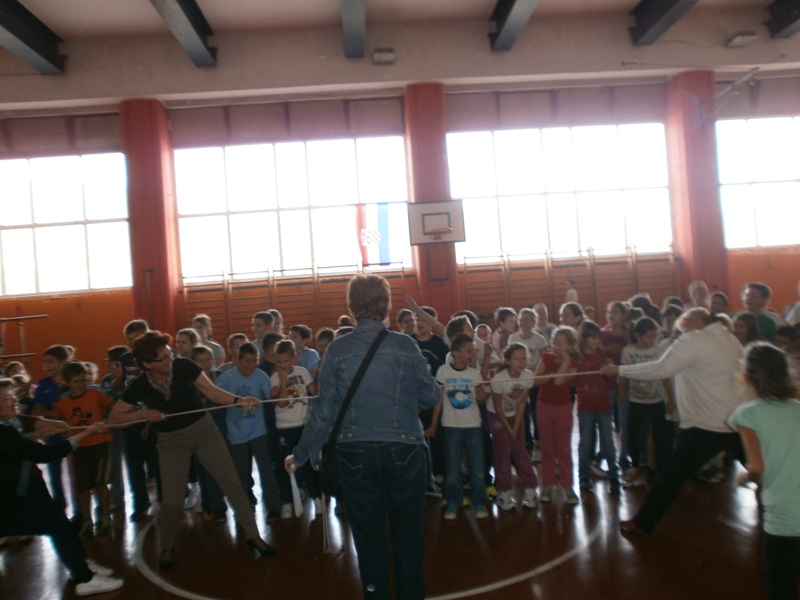 Na kraju su se u potezanju konopa okušale i učiteljice! Veru, Beru, Nadu i Miru pobijedili su, naravno Duška, Goga i Zoran!!!