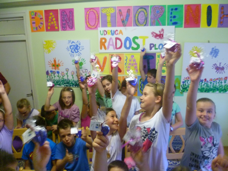 Djeca su rado sudjelovala u likovnom stvaralaštvu, družili su se, pjevali, častili slasticama zajedno s njihovim učiteljima i roditeljima. Na kraju je slijedila izložba dječjih radova. Zajedno smo proveli ugodne trenutke i vrata Udruge napustili sa srcima Radosti na dlanu.