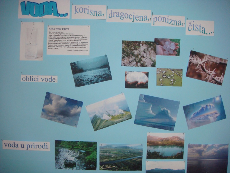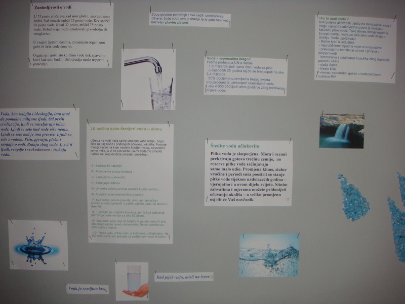 Učenici IV. razreda izradili su prigodne plakate koji ukazuju koliko nam je voda kao životni uvjet dragocjena. Zbog goleme potrošnje i sve većeg onečišćenja, zdrave čiste vode je sve manje. Zato je neki već nazivaju plavim zlatom. Djeca su mogla bolje spoznati značenje vode za život kao i načine štednje vode.