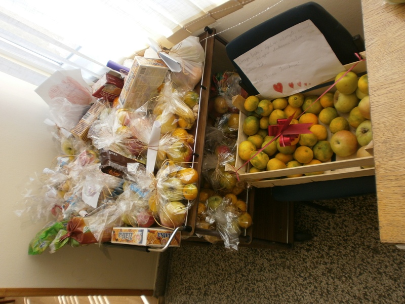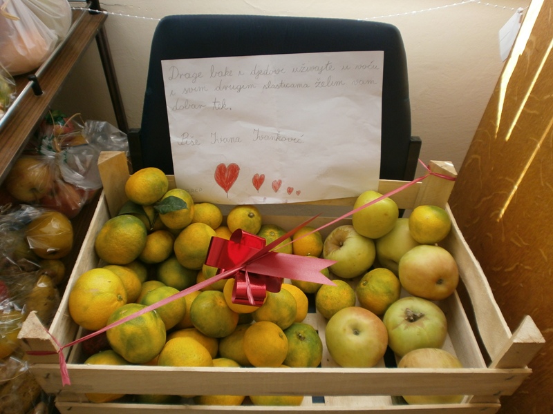 Učenici III. c, učiteljice Selme Oršulić i IV. c, učiteljice Nade Ivanković su zamoljena da u Školu donesu voće i slastice koje su zatim pakirali u paketiće uz dječje poruke i crteže.