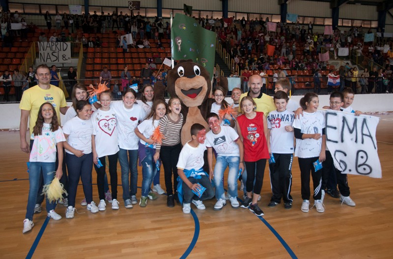 Zapravo, nije ga htjela sakriti nego ga je podijelila sa svima, pa je ravnateljici Meri Glavinić uručila spomen ploču Lino višebojca. – Prošli smo toliko škola u ovih šest godina, vi ste vrh vrhova u organizaciji – rekla je gospođa Jadranka, a tribine Doma športova Ploče urnebesno su pozdravile ovaj kompliment.