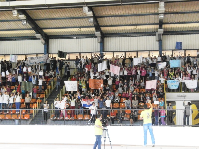 Tako je i bilo, podrška je bila gromoglasna, tribine su bile prekrivene transparentima, na parket su letjele role papira, navijače se moralo smirivati kako bi se održao obavezni kulturno-umjetnički program u kojemu su obol dali Mali i Veliki zbor (voditeljice Selma Oršulić i Helena Decovski), te KUD Marko Markota (voditelj Matko Žderić).
