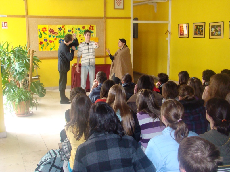 Naime, predstava je bila kombinacija klasične predstave, predavanja i radionice. Naši učenici su bili oduševljeni originalnim igranim prizorima iz drama W. Shakespearea (San Ivanjske noći, Romeo i Julija). Nastavnicima Hrvatskoga jezika bila je to značajna pomoć kako uvesti učenika u dramski svijet Williama Shakespearea, velikana kazališne i dramske umjetnosti.