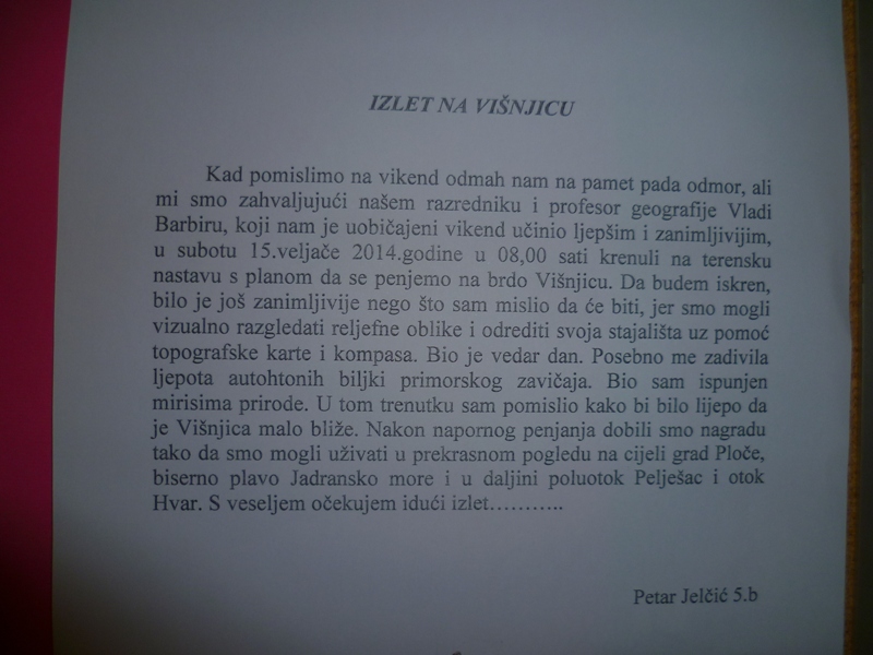 Da budem iskren, bilo je zanimljivije nego što sam očekivao. Na licu mjesta promatrali smo različite reljefne oblike te određivali svoja stajališta pomoću topografske karte i kompasa.