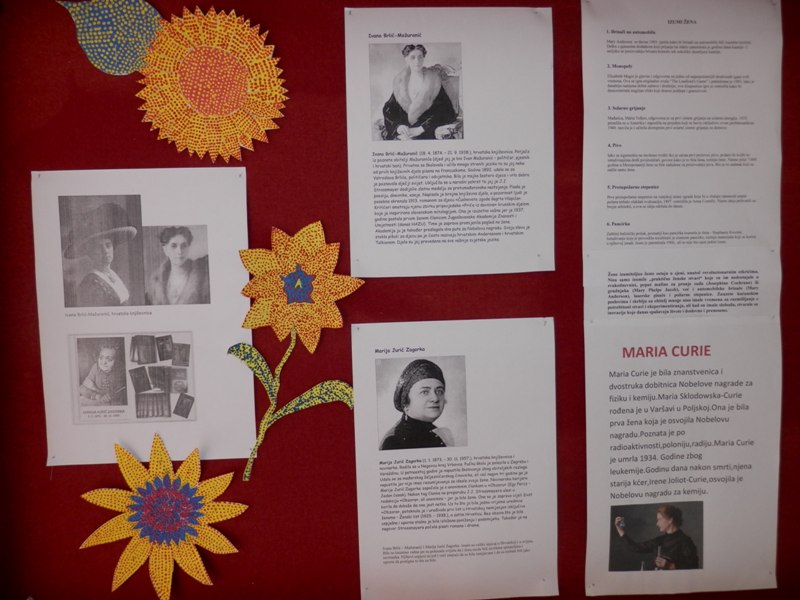 Kroz istraživački rad učenice izvannastavne aktivnosti „Mladi povjesničari“ istražile su koje su to žene bile izumiteljice i što su izumile. Žene izumiteljice često ostaju u sjeni, unatoč revolucionarnim otkrićima. Nisu samo izumile „praktične ženske stvari“ koje su im nedostajale u svakodnevnici, poput mašine za pranje suđa ili grudnjaka, već i automobilske brisače, laserske pisače, daljinsko upravljanje torpedom i požarne stepenice. Zauzete kućanskim poslovima i skrblju za obitelj mnoge nisu imale vremena za razmišljanje o potrebitosti stvari i eksperimentiranja, ali kad su imale slobodu, stvarale su inovacije koje danas spašavaju živote i doslovno i preneseno.