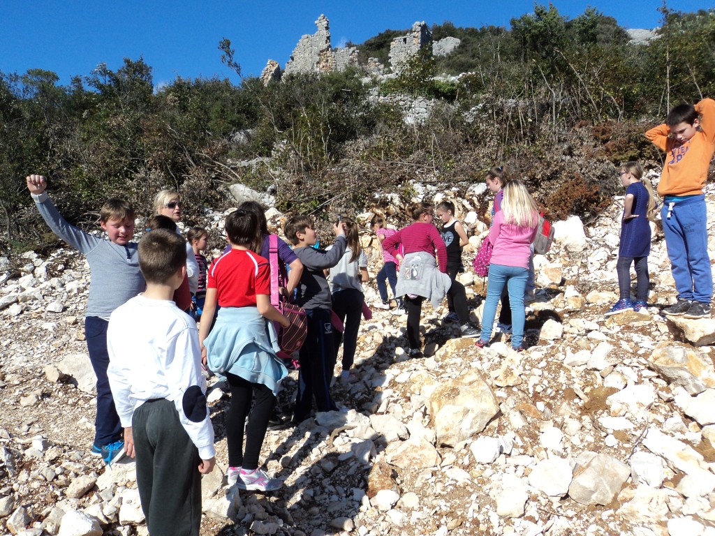 Penjali smo se do zidina Grupkovića kule, koja je stara preko 450 godina. Slikavali smo se i otkrivali prirodu. Otkrili smo izvor, šumske puteljke i mjesto gdje se divlje životinje kupaju. Uživajući u zelenilu i miru odmorili smo se.